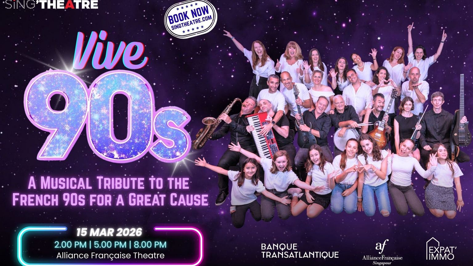 Singapore, 20 January 2026 — Get ready to rewind the clock and relive the iconic sounds of the 1990s at VIVE 90s, a high-energy live fundraising concert celebrating French music of the decade, presented in support of Sing’theatre’s 365 Hours of Music on Sunday, 15 March 2026 at Alliance Française Theatre.