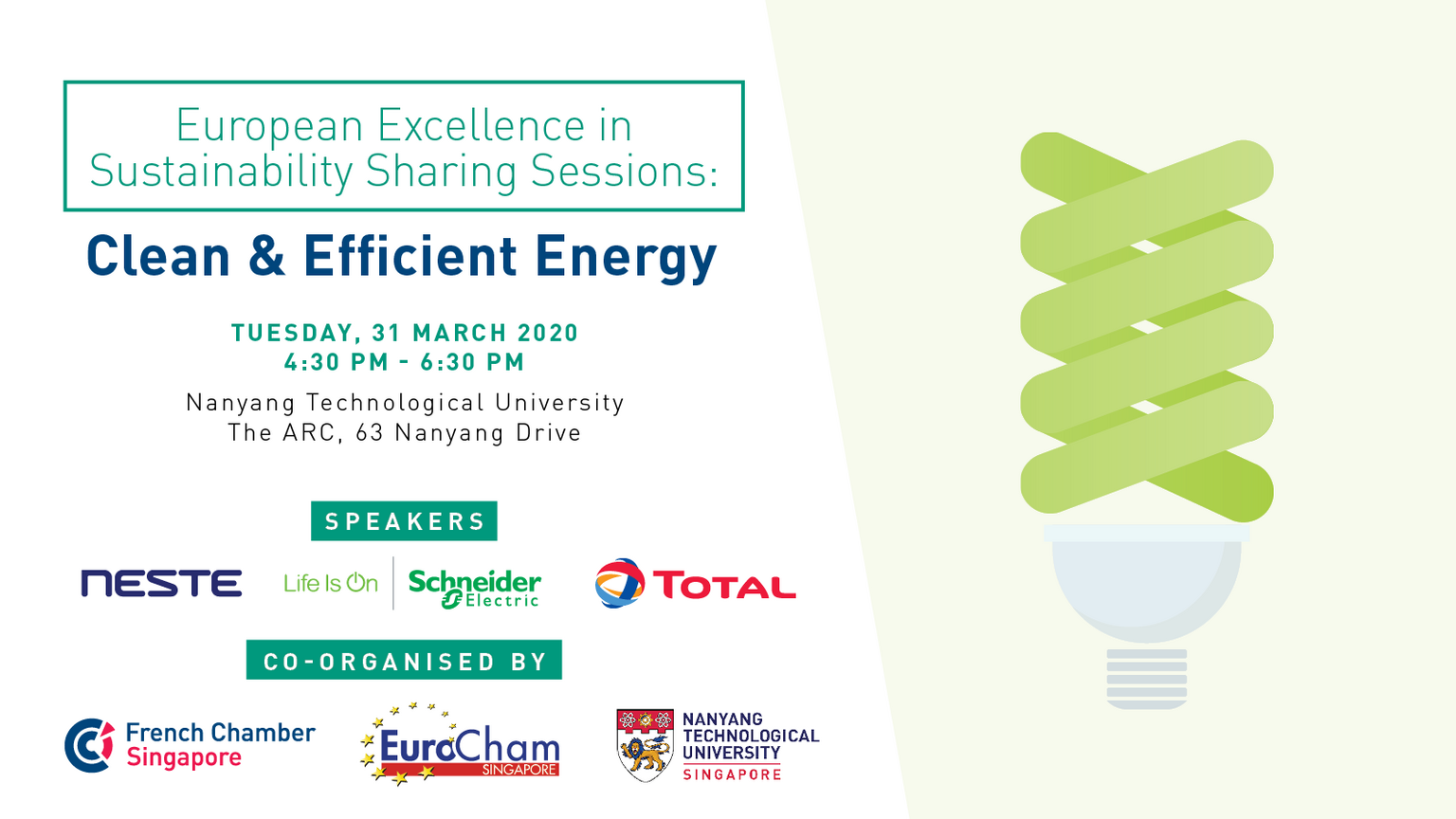 On the 31st of March at the Nanyang Technological University, three European companies from the energy sector; Neste Oil, Schneider Electric and Total Solar, will present their profile and sustainability efforts to other EuroCham members, government representatives, stakeholders, university students and alumni.