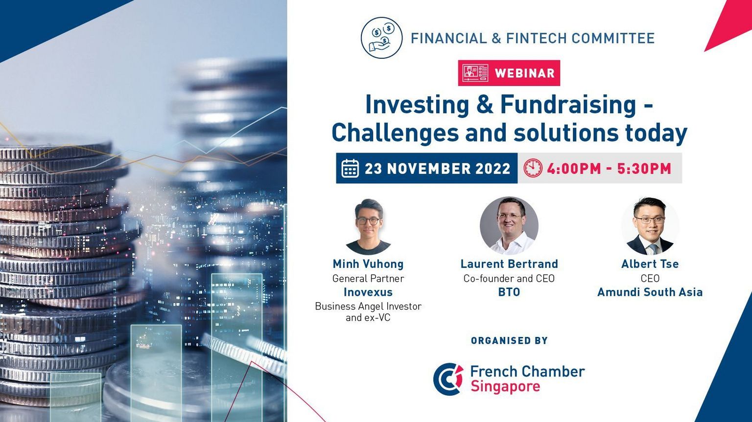 The French Chamber of Commerce in Singapore is delighted to invite you to our WEBINAR about Investing & Fundraising - Challenges and Solutions today.