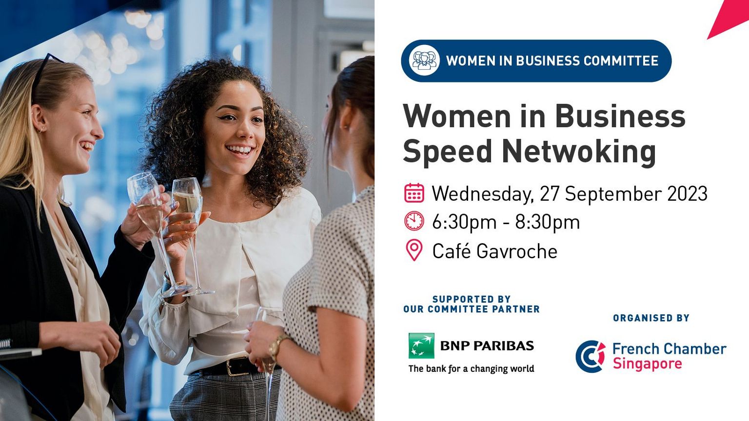 Working in a large company or SME, or being an Entrepreneur, come and boost your network and find synergies with other Business Women!