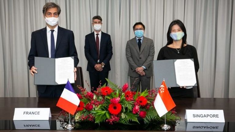 MOU Signing Ceremony on 19 April 2021 between Mr Marc Abensour, Ambassador of France to Singapore and Ms Quah Ley Hoon, Chief Executive of MPA to…