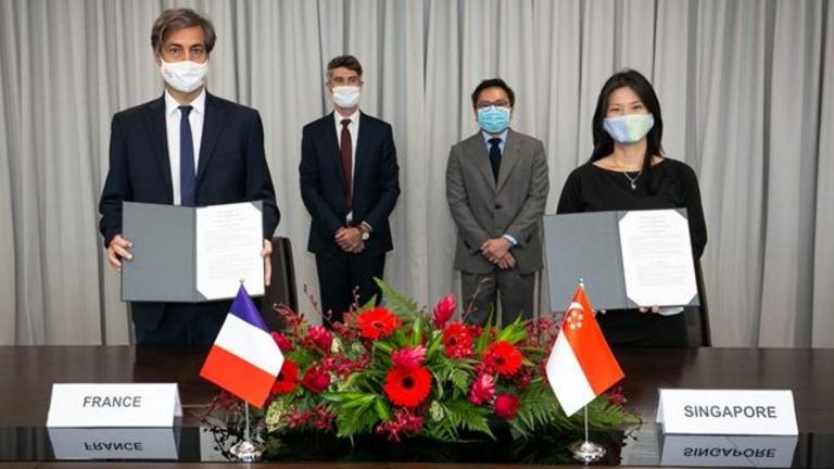 MOU Signing Ceremony on 19 April 2021 between Mr Marc Abensour, Ambassador of France to Singapore and Ms Quah Ley Hoon, Chief Executive of MPA to…