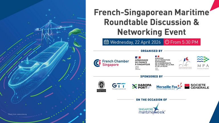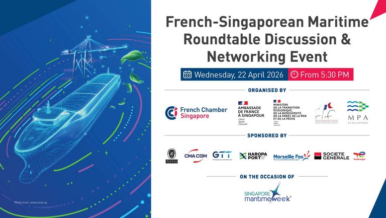 The Fullerton Hotel Singapore • SingaporeA high-level French–Singaporean maritime roundtable discussion & networking cocktail during Singapore Maritime Week 2026.