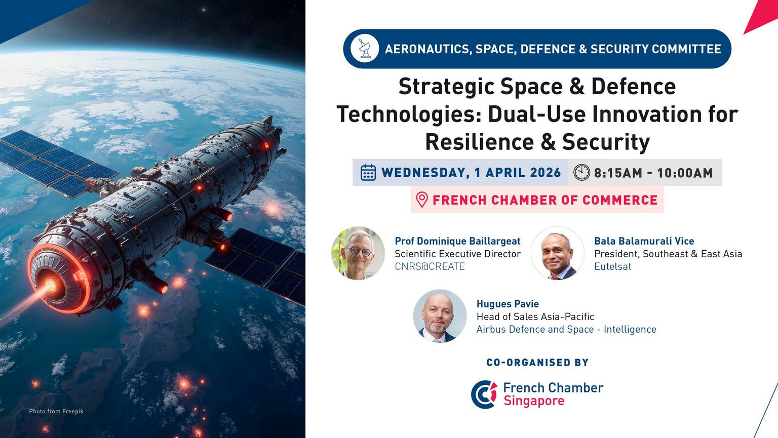 Participants will gain a forward-looking perspective on how space and defence ecosystems are evolving, and how strategic partnerships can unlock new opportunities in resilience, technological sovereignty, and sustainable security.