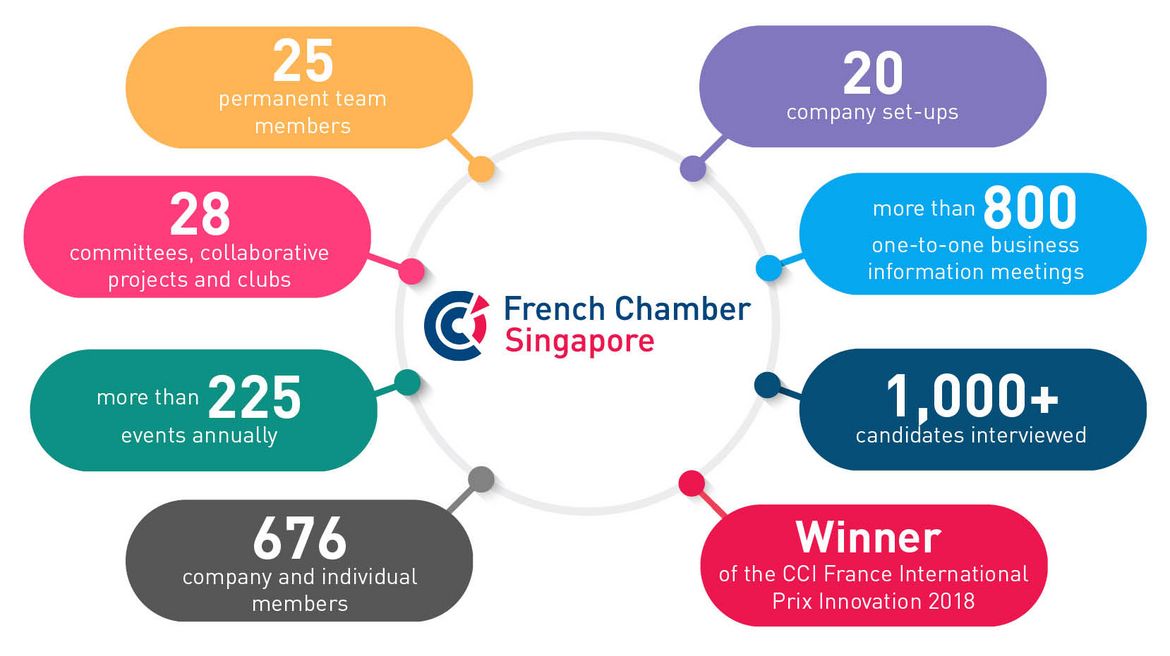 Créée en 1979, la Chambre de Commerce Française de Singapour est une association de droit singapourien à but non lucratif, autofinancée et au service des entreprises. Elle fait partie d’un réseau de 125 Chambres françaises à l’international (CCIFI) dans 98 pays, avec près de 36 000 entreprises.