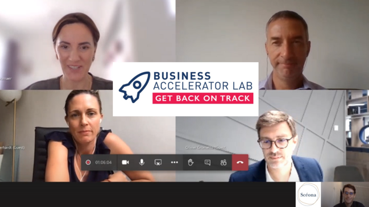 The first session of the digital version “Business Accelerator Lab – Get back on track” was with Matthieu Chauveau, Co-Founder and CEO of SCEONA. He presented his business model and challenge and discussed with 3 advisors - Laetitia de Seroux , Olivier Grometto and Stephane Thierry.