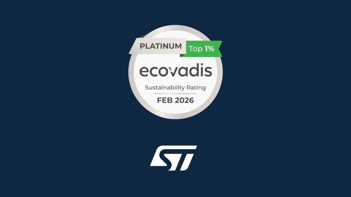 STMicroelectronics has once again been awarded the EcoVadis Platinum medal, placing it among the top 1% of companies worldwide assessed for sustainability performance.