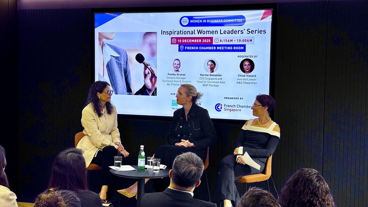 In an intimate and candid conversation, moderated by Chloé Vialard, Avocate/Lawyer at A&O Shearman, both leaders shared candid experiences, practical wisdom, and uplifting messages for the next generation of leaders. The conversation spanned working abroad, navigating cultural and business complexities in Southeast Asia, and the personal leadership traits that define resilient, people-centric leaders.