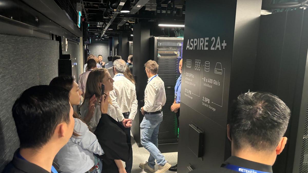 During the visit, participants had the unique opportunity to tour NSCC's second data centre, which houses advanced supercomputers like ASPIRE2A, Cray, and Nvidia DGX H100 AI. These systems, operating with a significant power demand of 3 MW, produce substantial heat.