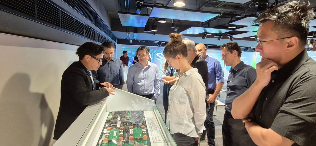 Participants gained valuable insights into the innovative cooling solutions that allow this Platinum Green Mark Tropical Data Centre to operate without traditional air-conditioning. The centre uses direct-to-chip hot water cooling, ambient air, and a specially designed thermosiphon rear door cooling system developed in Singapore. They also learned about NSCC's use of AI, digital twins, and data analytics to enhance data centre energy efficiency.