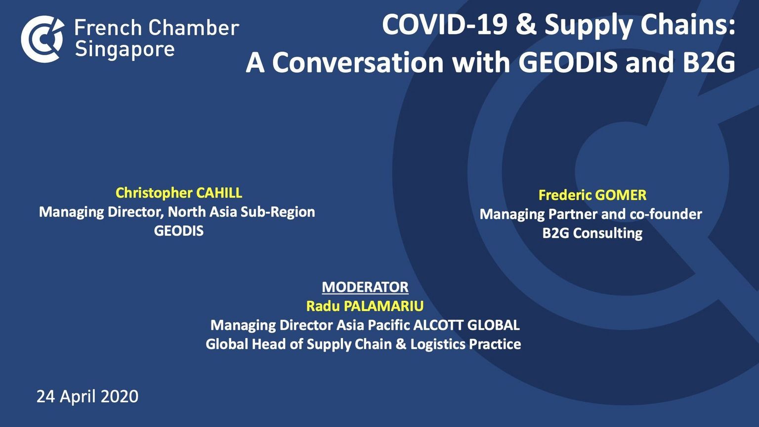 In this webinar, Chris Cahill,Managing Director, North Asia Sub-Region at GEODIS and Frederic Gomer, Managing Partner and co-founder of B2G Consulting shared candid “behind the scenes” on how they responded to the disruptions of the supply chains and what are their perspectives of the journey ahead.