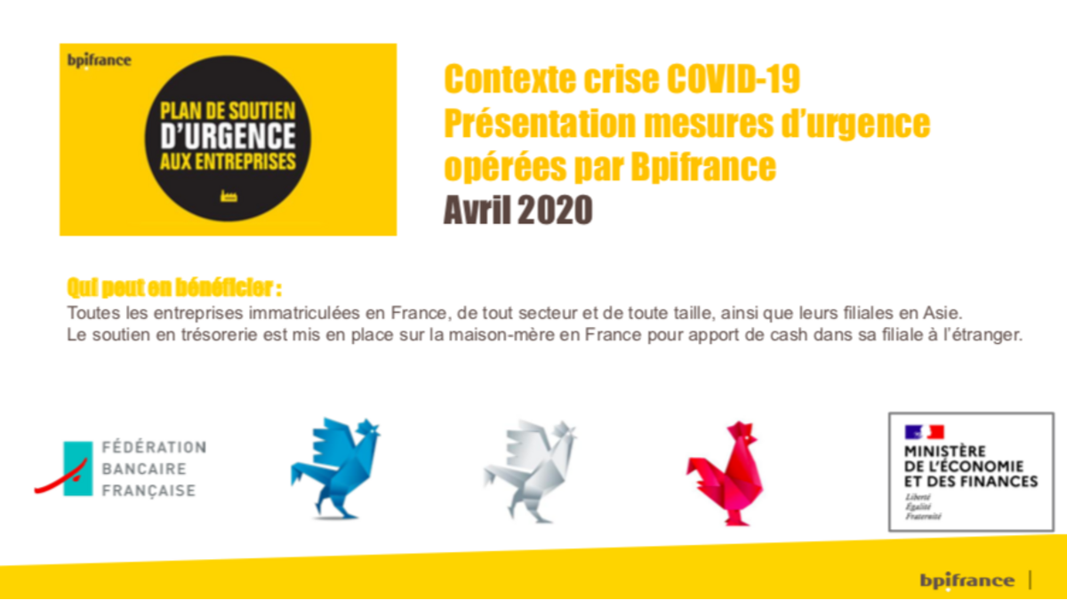 Jeudi 9 avril s'et tenu un webinar présentant les mesures de soutien en trésorerie et en capital dans le contexte de crise du coronavirus mises en place par BPIfrance.