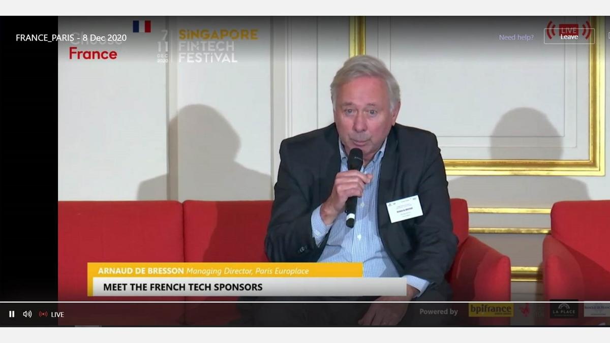 The Palais Brongniart livestream event on 8 Dec kicked off with a high-level round table, presenting French Fintech companies as well as the current situation of the pandemic with up-to-date insights from Cedric O, Minister of State for Digital Transition and Electronic Communication, François Villeroy de Galhau, Governor of Banque de France, Arnaud Caudoux, Deputy CEO of Bpifrance and Arnaud de Bresson, Managing Director of Paris EUROPLACE.