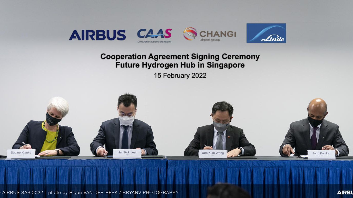 Airbus has signed a Cooperation Agreement with Changi Airport Group, global industrial gases and engineering company Linde and the Civil Aviation Authority of Singapore (CAAS) to study the potential for a future hydrogen hub in the city state.