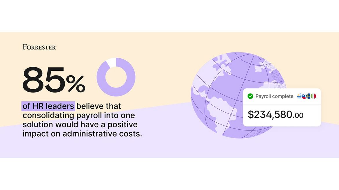 According to the Forrester report, 85% of HR and finance leaders believe that consolidating payroll into one solution would have a positive impact on administrative costs. This aligns with the goal of 40% of organizations to lower software expenses in the coming year.