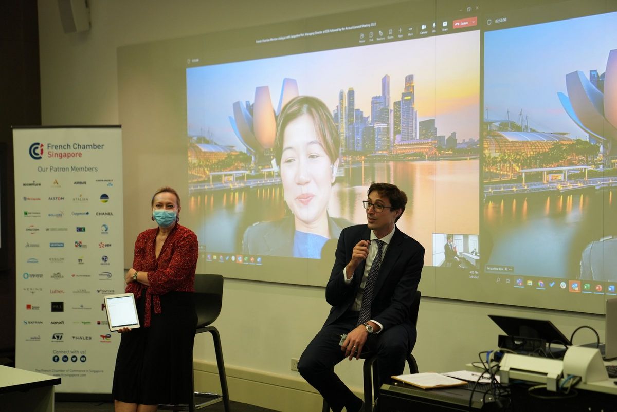 Thomas Baudlot, President, gave the introductory remarks before welcoming our special guest, Mrs. Jacqueline Poh, Managing Director at Economic Development Board (EDB), who engaged in a vivid dialogue with members on sustainability, innovation, digitalization and more.