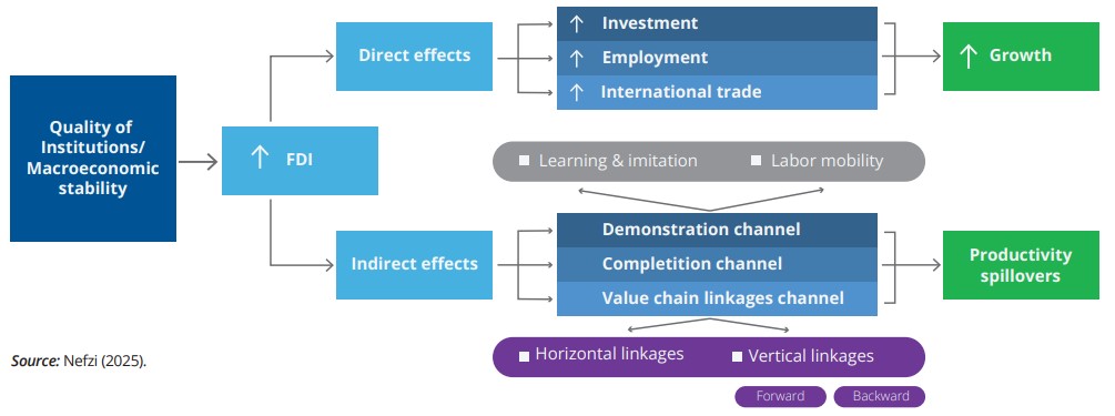 David Nefzi (Banque de France) signe une contribution clé qui souligne l’effet des IDE sur la productivité et la croissance selon divers critères (capital humain, ouverture commerciale, ou encore inclusion financière). Il offre ainsi une lecture fine des vulnérabilités et des opportunités pour les économies émergentes. Un rapport de référence pour anticiper les tendances régionales et leurs répercussions mondiales.
