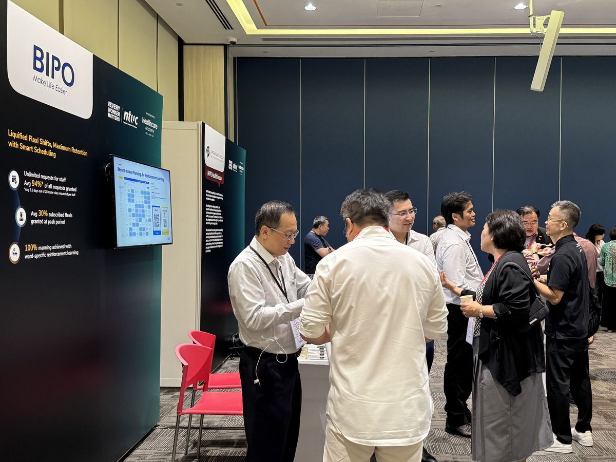 During the event, BIPO showcased itsAI-driven Smart Rostering System, designed to optimise workforce management while addressing operational demands. Successfully implemented at Tan Tock Seng Hospital, the system has enhanced work-life balance for healthcare professionals by granting more flexible scheduling across 40 wards.