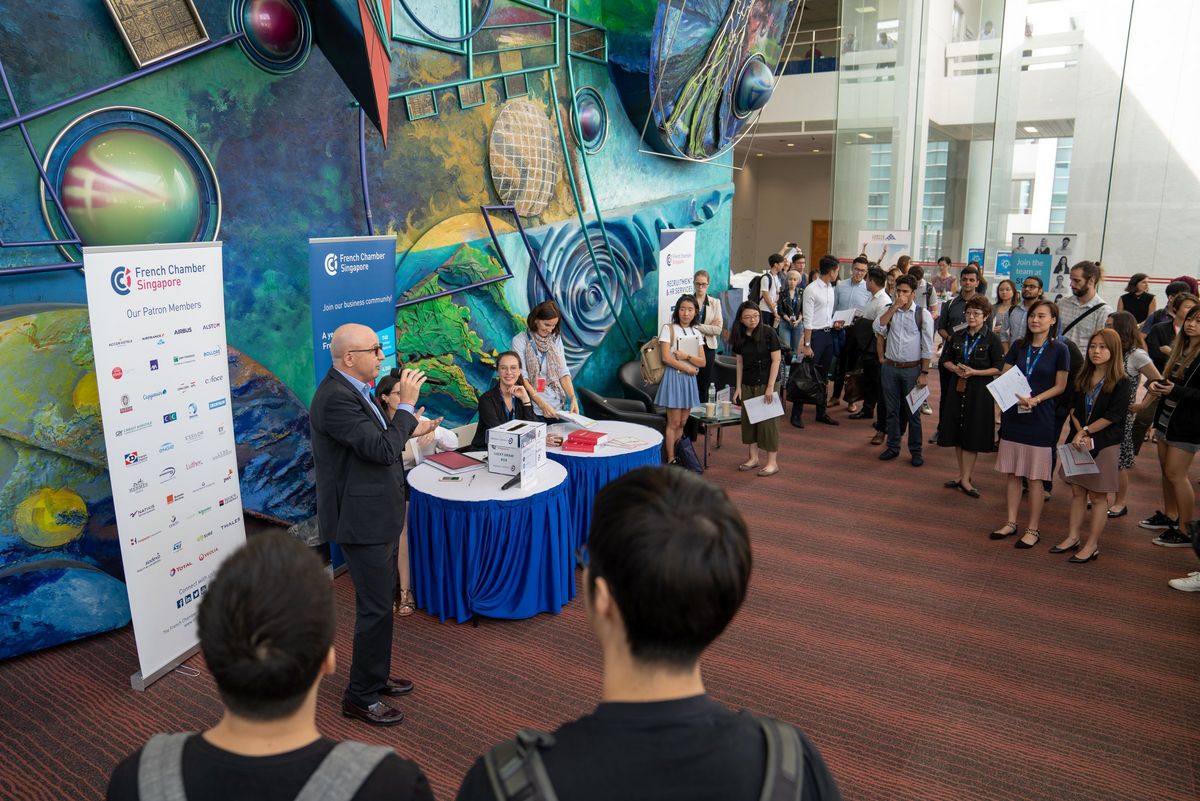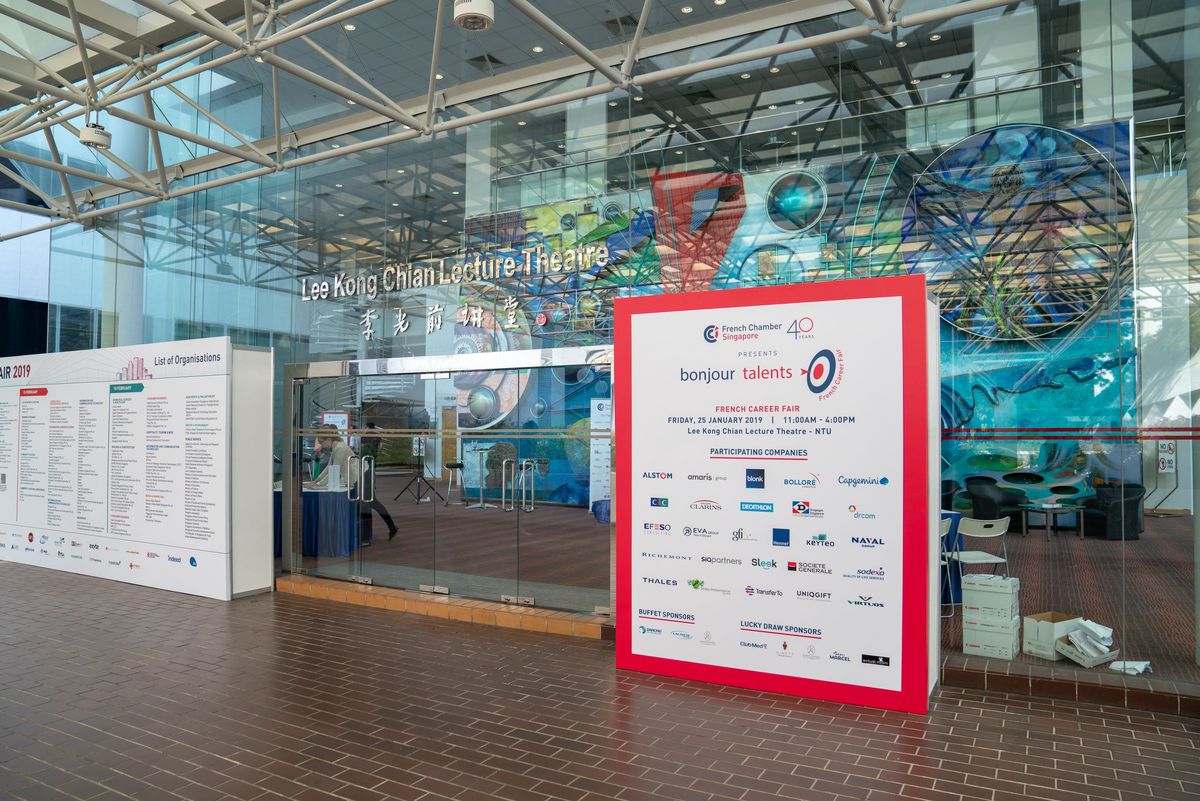 25 Jan 2019 – A successful third edition of the French Chamber’s French Career Fair, Bonjour Talents, was held at Singapore Nanyang Technological University NTU, saw 500 students coming from NTU’s various schools and faculties from computing to business, but also from other universities in Singapore from NUS, SMU, ESSEC, INSEAD.