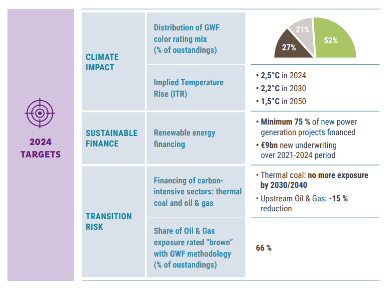 In line with this strategic view, we have taken actions as part of the BPCE 2024 strategic plan. Natixis CIB has reaffirmed its climate commitments. We are now part of the Net Zero Banking Alliance with the objective to aligning our balance sheet with a "net zero" emissions trajectory consistent with the Paris Agreement by 2050. To track this LT commitment, Natixis CIB took medium term commitments: our balance sheet temperature was 3.2°C (2020) and we commit to reaching 2.5°C in 2024 and 2.2°C in 2030, with the view of being at 1.5°C in 2050. This is quite unique in the financial sector