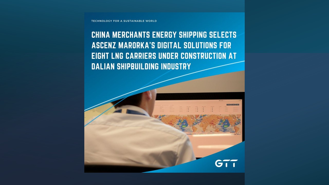 Paris, 13 May 2025 - GTT and its Smart Shipping[1] arm, Ascenz Marorka, announce that China Merchants Energy Shipping (CMES) has selected Ascenz Marorka’s digital solutions for a series of eight 175,000 m³ LNG[2] carriers, currently under construction at Dalian Shipbuilding Industry Co. (DSIC) in China.