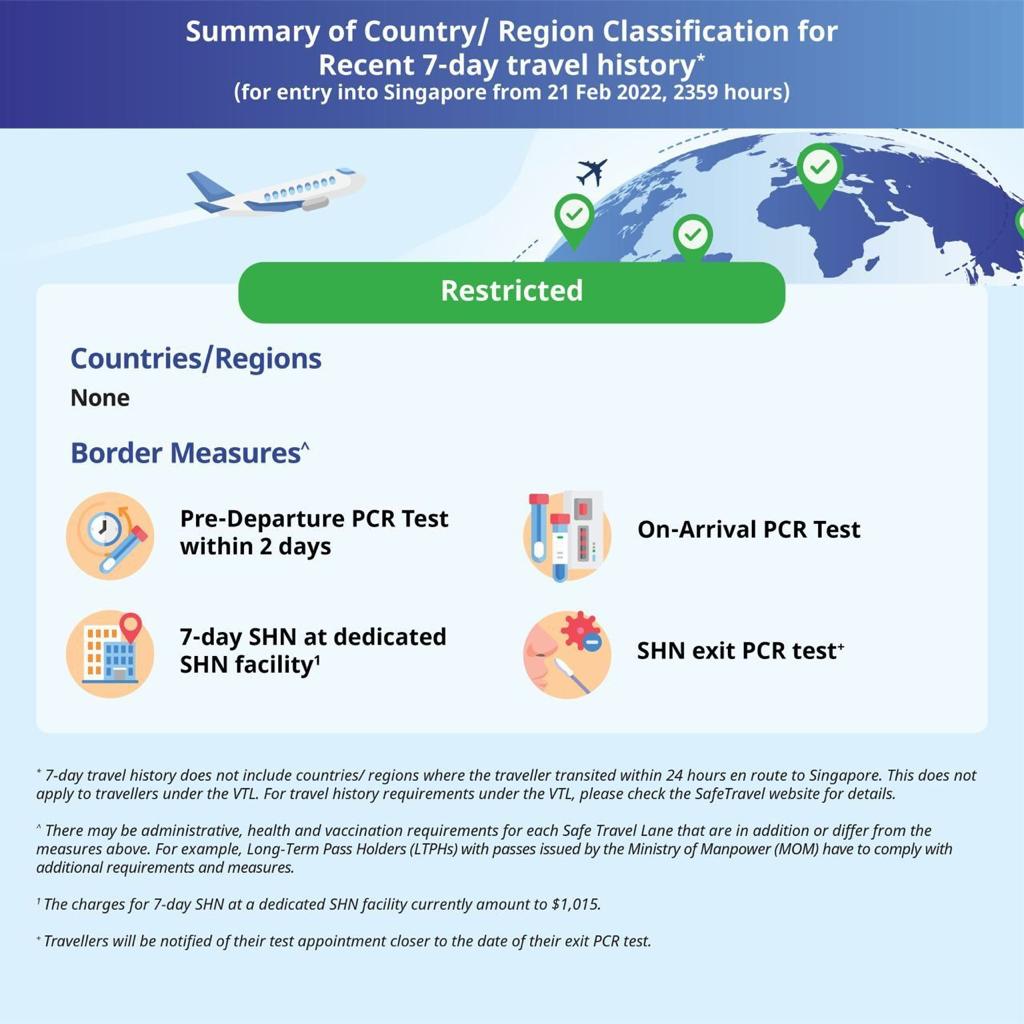 Singapore’s Multi-Ministry Taskforce (MTF) announced on 16 Feb 2022 that the Government is updating the country/region classification and the border measures, including the removal of entry approval or Vaccinated Travel Pass (VTP) for fully vaccinated Long-Term Pass Holders (except Work Permit Holders) from 22 February 2022.