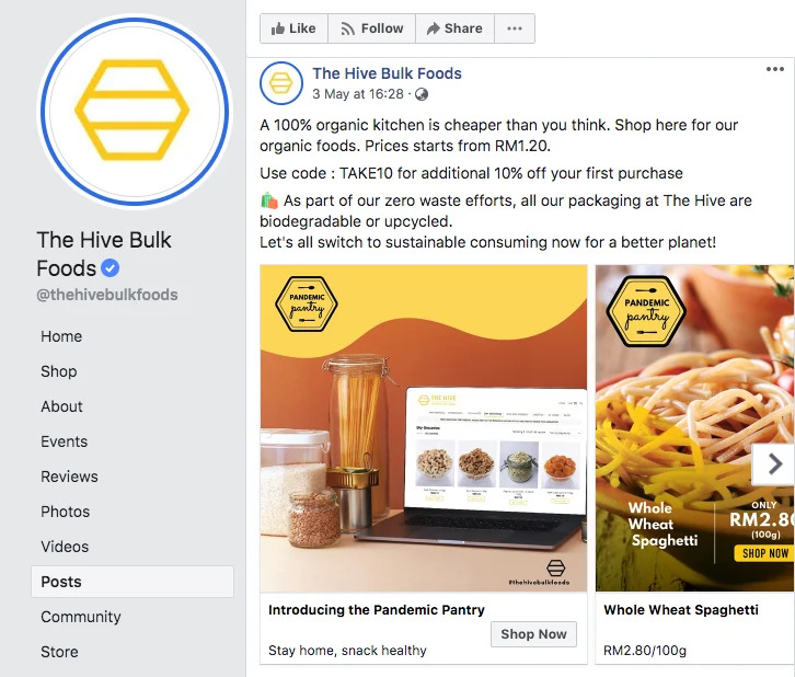 The Hive Bulk Foods – Products highlights (pic below): Since more users are cooking at home, we pushed for ingredients for home cooking and snacks to introduce users to a low barrier to entry zero waste organic ingredients for users to try. After we introduced this, we experienced a +684% increase in ROAS vs other products and campaigns.