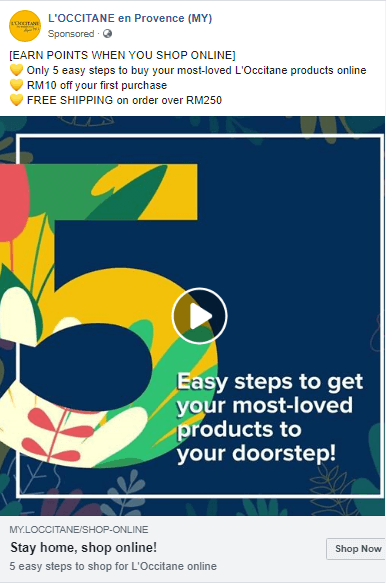 L’Occitane Malaysia and Singapore – tutorial for online shopping (pic below): A segment of retail users may not have experienced purchasing online from L’Occitane’s official website and are used to purchasing from their retail outlets which were closed during MCO. Although the retail stores have recently reopened, users may be reluctant to visit them during these uncertain times. We created a “How to Shop Online” tutorial video to educate existing L’Occitane retail users about the benefits of shopping online and how to do so. We experienced an uplift of ROAS by +115% compared to other campaigns. Have a look at the tutorial video in our article on this successful partnership.