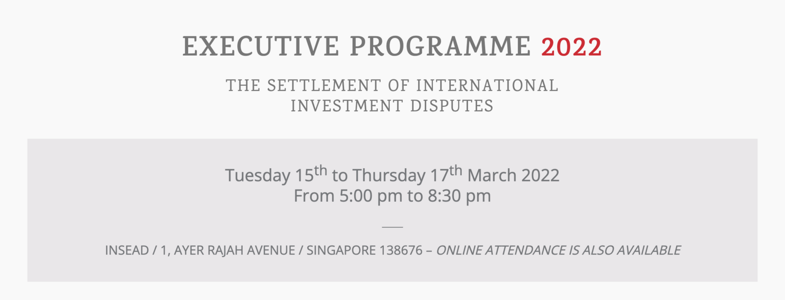Executive Programme 2022: The Settlement Of International Investment Disputes