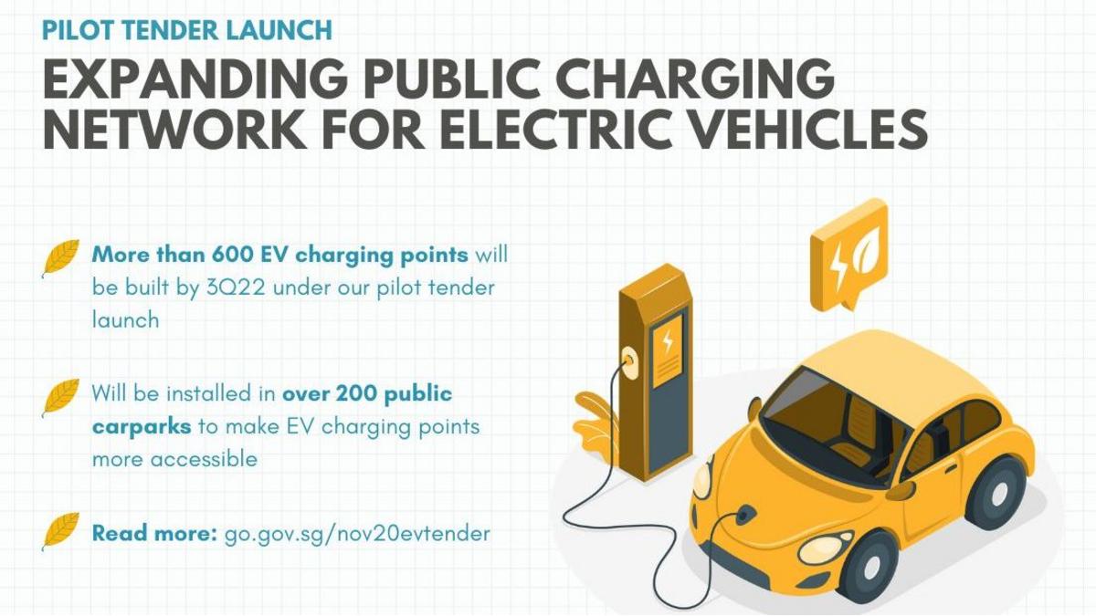 The Urban Redevelopment Authority (URA) and the Land Transport Authority (LTA) announced today the launch of Singapore’s pilot tender for electric vehicle (EV) charging points at public carparks.