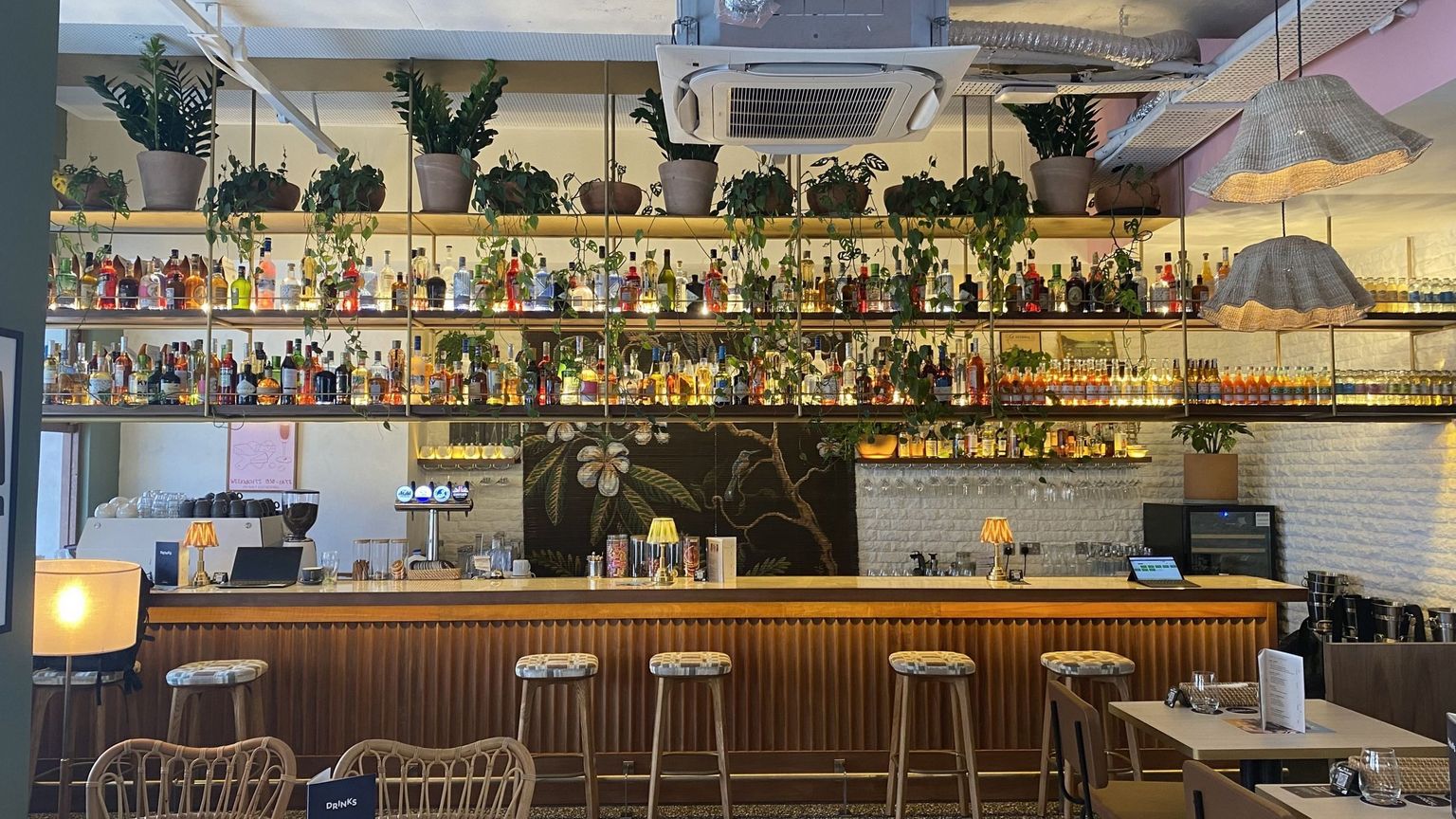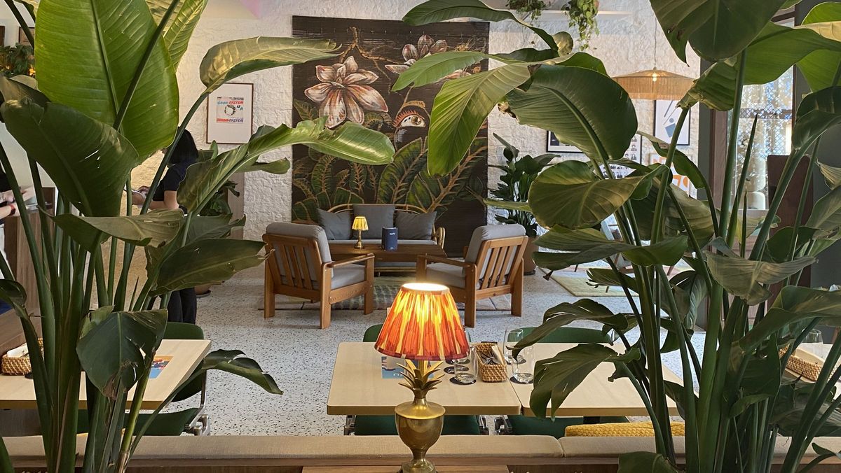 Gazing around, one cannot miss the two stunning artworks by British artist Rick Smith. With vibrant jungle motifs, they further enhance the tropical allure, making patrons feel miles away from the urban jungle.