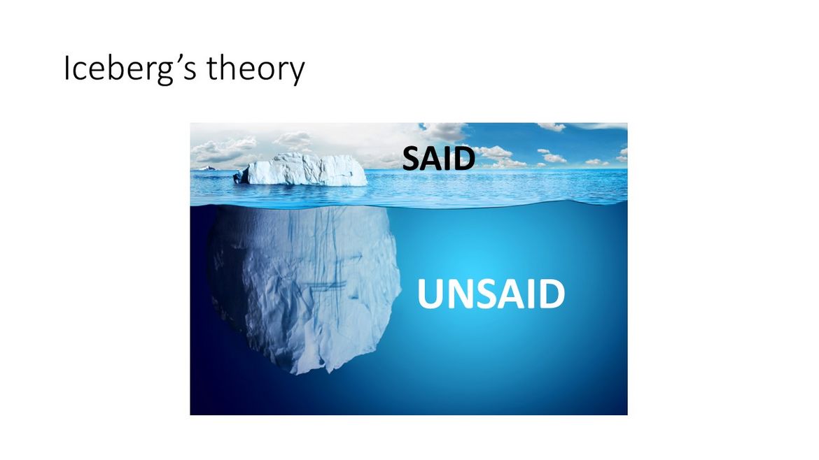 The iceberg is often used as an analogy of Freud’s theory of the mind. The visible part corresponds to what is “said”, and the hidden part to what is “unsaid”.