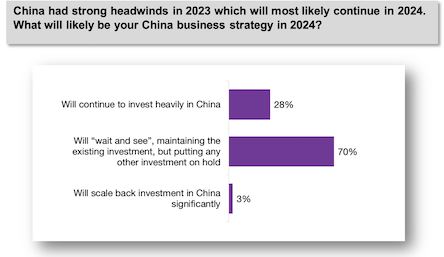 However, companies are adopting a wait-and-see strategy for China in 2024 due to strong headwinds in 2023.