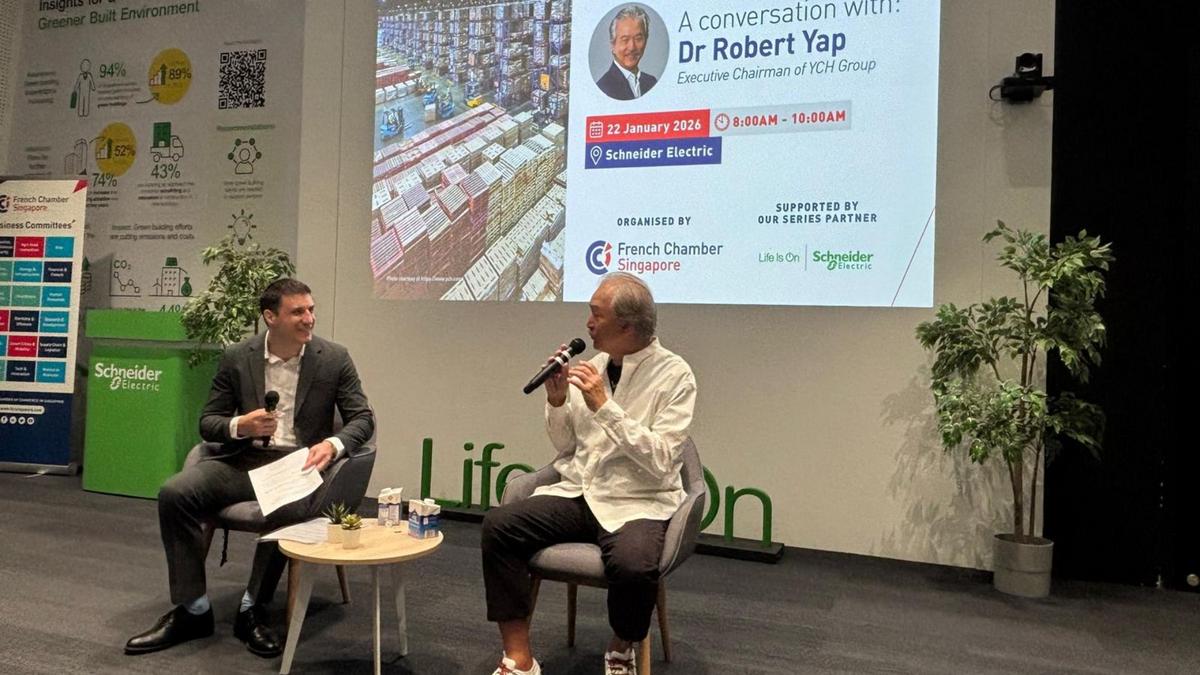 More than 50 attendees joined the French Chamber of Commerce in Singapore (FCCS) for an exclusive conversation with Dr Robert Yap, Executive Chairman of YCH Group, sharing insights from decades of leadership and business transformation. The session opened with introductory remarks by Mr. Yoon Kim, Cluster President, Singapore & Brunei at Schneider Electric, followed by an engaging discussion moderated by Mr. Norman Delouis, General Manager at A.Clouet (Singapore) -Maison Denis.