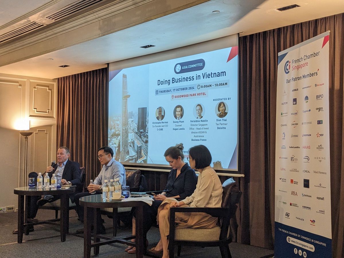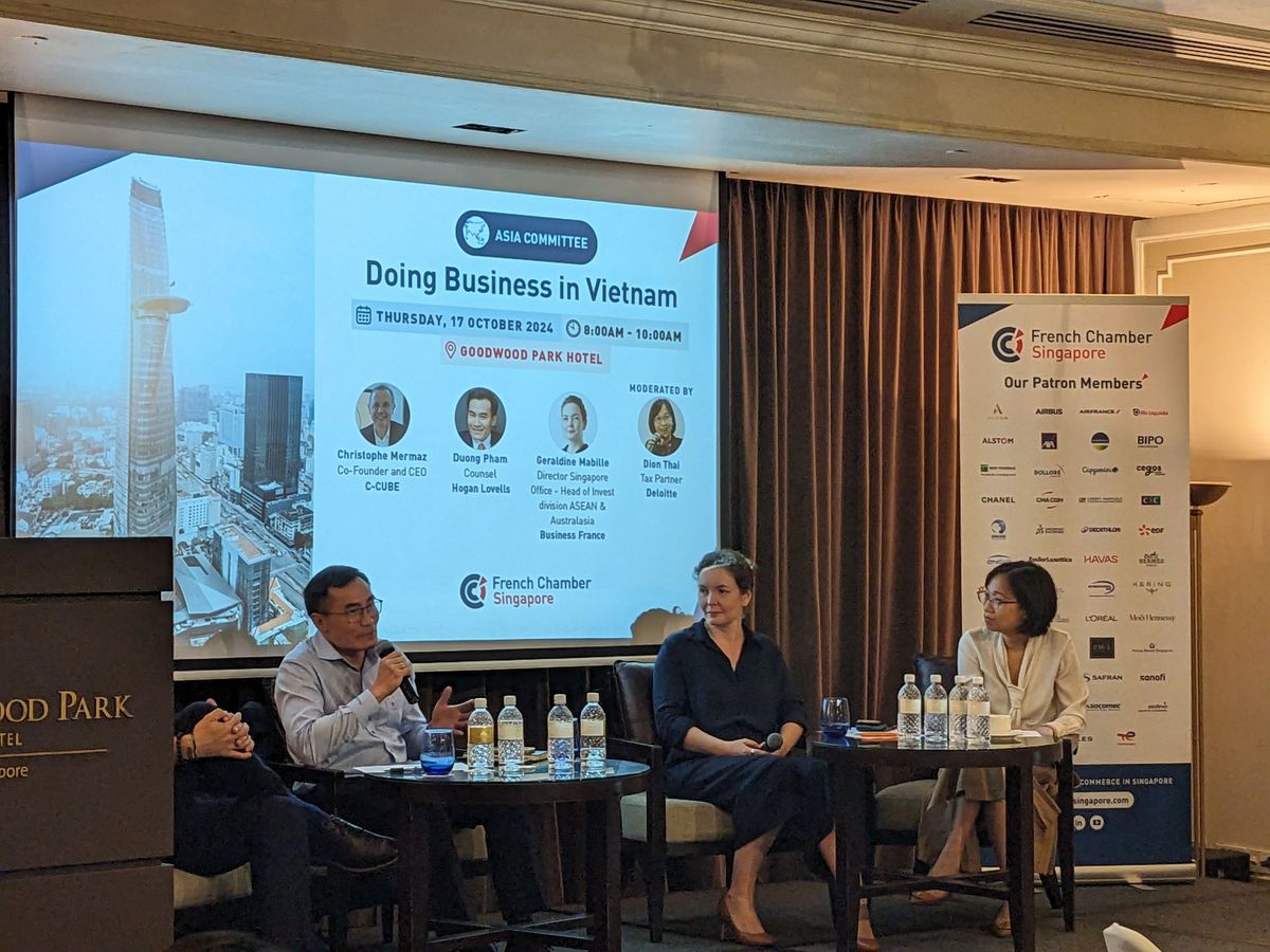 Thank you to our esteemed speakers Geraldine Mabille, Director Singapore Office at Business France,Duong Pham, Counsel at Hogan Lovells Hanoi office, Christophe Mermaz, Co-Founder and CEO at C- CUBE and to Dion Thai, Tax Partner at Deloitte for facilitating this panel discussion exploring the opportunities and practical considerations of doing business in Vietnam.