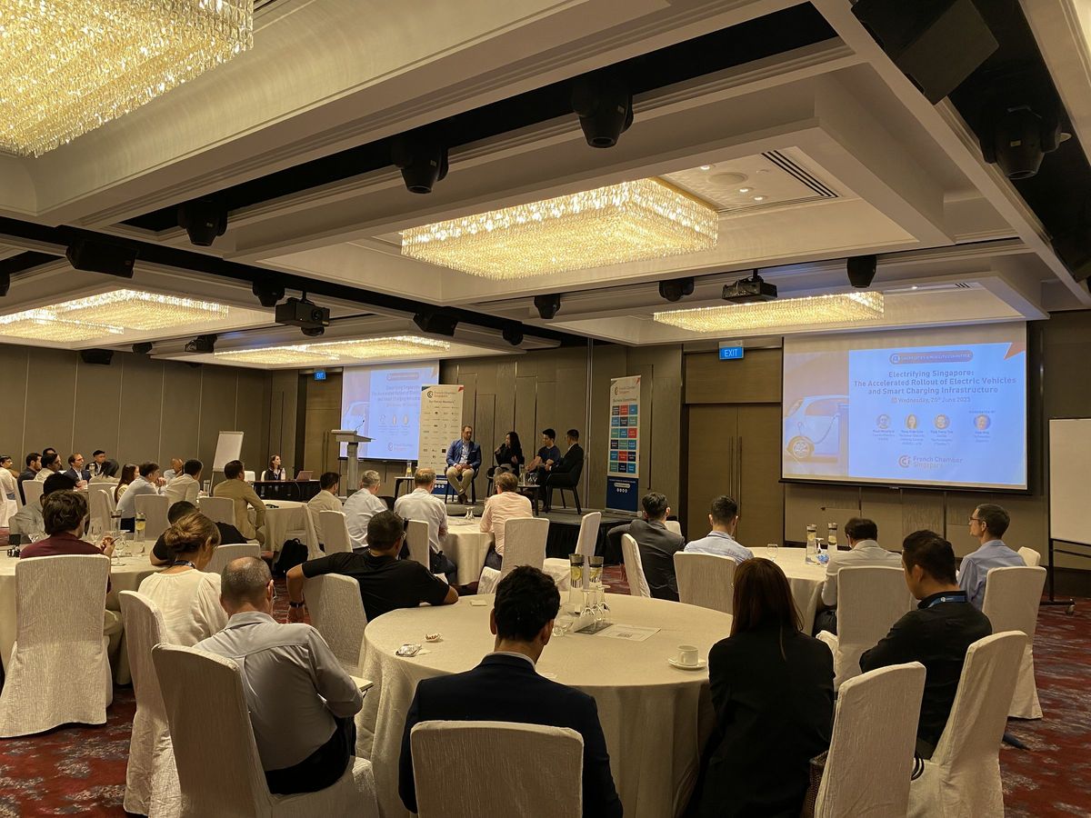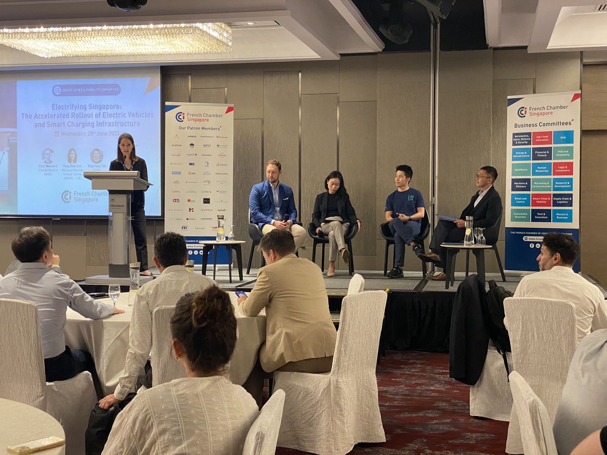 The French Chamber of Commerce in Singapore would like to express our sincere thank you to Paul Welsford – Head of Business Development at ComfortDelGro ENGIE, Yong Xian Lim - Senior Manager/EV Regulations at National Electric Vehicle Centre (NEVC) -LTA, Ting Feng Toh - CEO & Co-founder at GetGo Technologies and Ray Ong - Head of Channel management and Distribution business at Schneider Electric for hosting this insightful discussion on the Electrification of Singapore. A comprehensive overview of the Electric Vehicles and smart charging infrastructure rollout in Singapore.