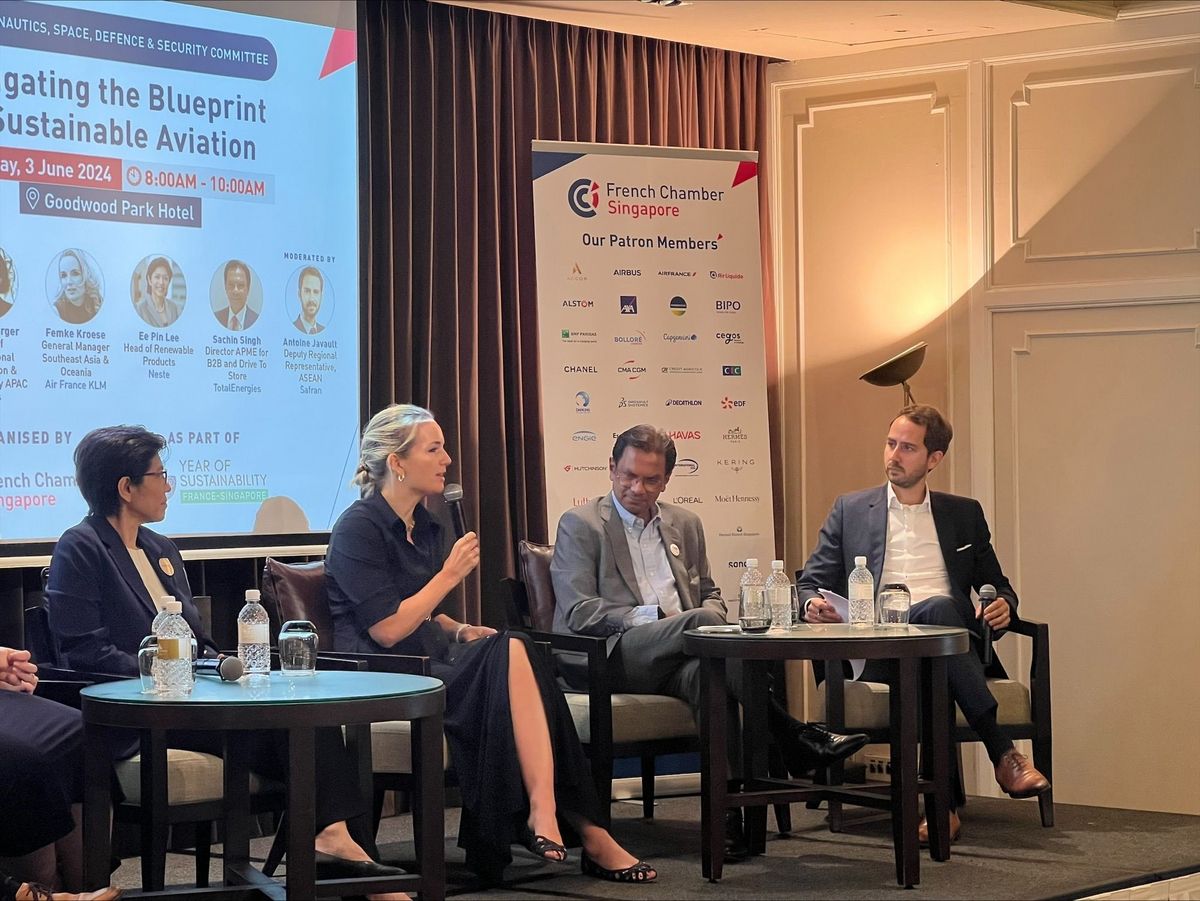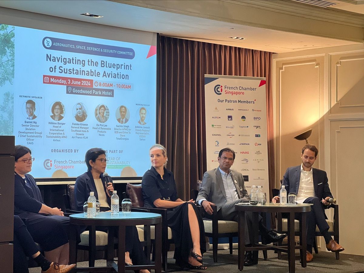 The French Chamber of Commerce started the month of June with a breakfast talk on Navigating theBlueprint of Sustainable Aviation, fostering a meaningful dialogue on the path towards a more sustainable future for the aviation industry. The event underscored the critical role of Sustainable Aviation Fuels (SAF), technological innovation and operational optimization in achieving the aviation industry's sustainability goals.