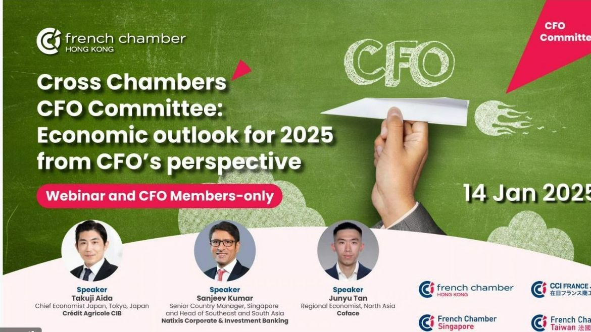 Throwback on our Cross Chambers CFO Club where we will delve into the Economic Outlook for 2025 in the APAC region from the perspective of Chief Financial Officers (CFOs) – collaboratively hosted by four chambers: the French Chamber of Commerce in Singapore, the French Chamber of Commerce and Industry in Hong Kong, the French Chamber of Commerce and Industry in Japan and the French Chamber of Commerce in Taiwan.