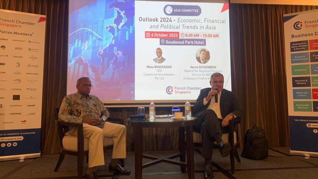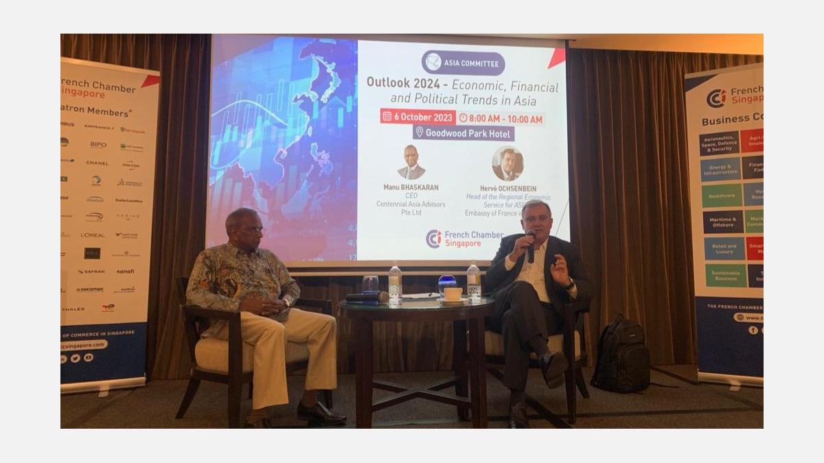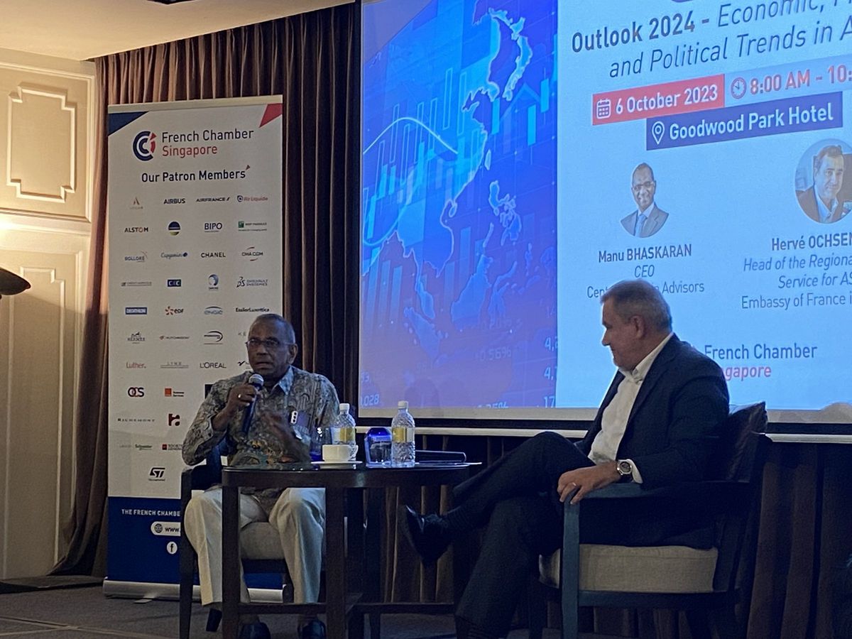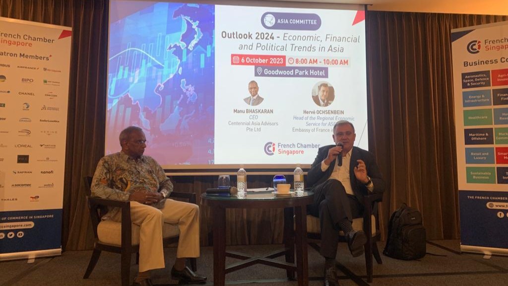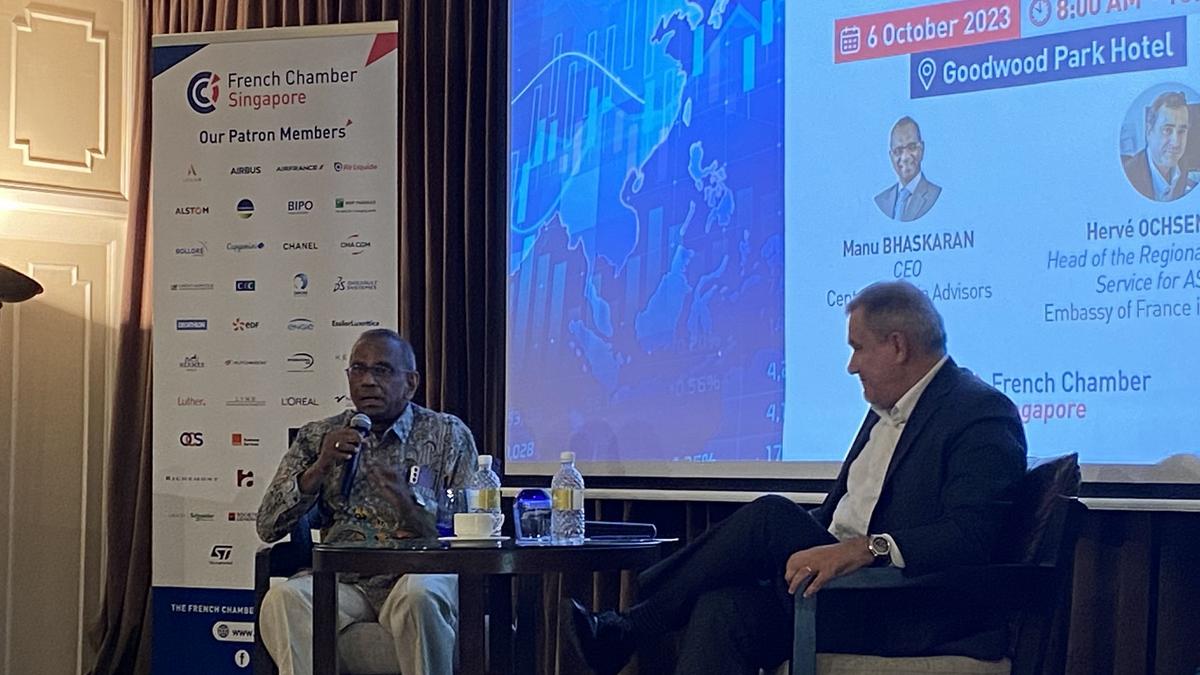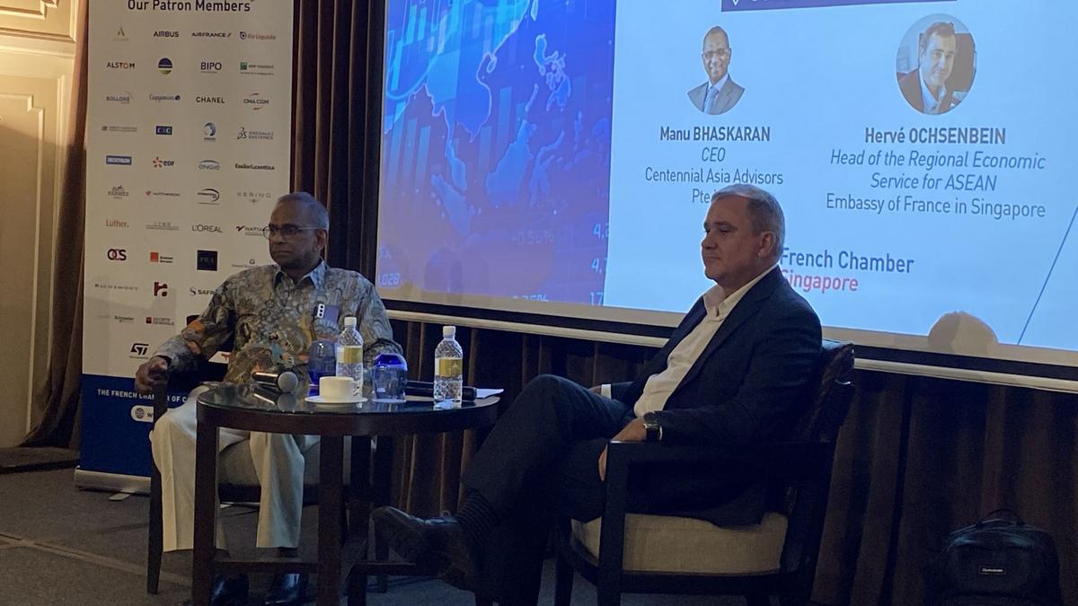 This informative session featured two expert economists Mr. Manu Bhaskaran, Partner at Centennial Group International and Founding Director/CEO of Centennial Asia Advisor, along with Mr. Hervé Ochsenbein, Head of the Regional Economic Service for ASEAN at the French Embassy in Singapore.