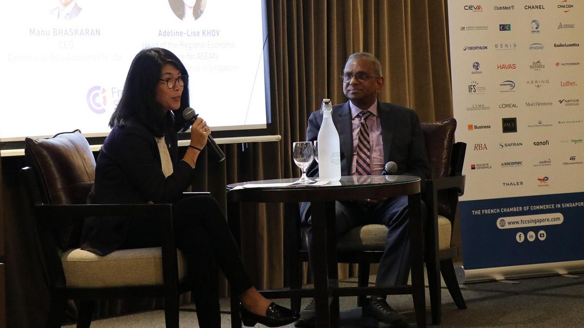 The informative session featured two expert economists Adeline-Lise Khov, Head of the Regional Economic Service for ASEAN, Embassy of France in Singaporeand Manu Bhaskaran, CEO of Centennial Asia Advisors.