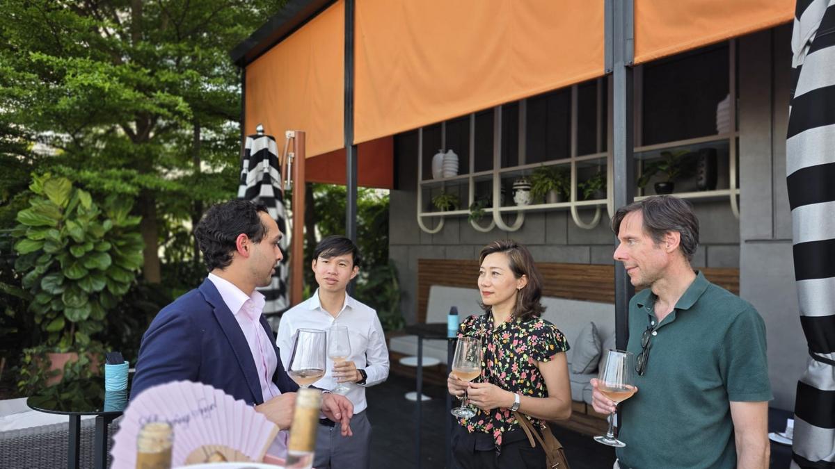 As the sun set over Singapore’s skyline, guests enjoyed a relaxed moment to connect, exchange ideas, and meet professionals from across the French and international business communities. The rooftop setting and golden hour created the perfect backdrop for conversations and new connections.