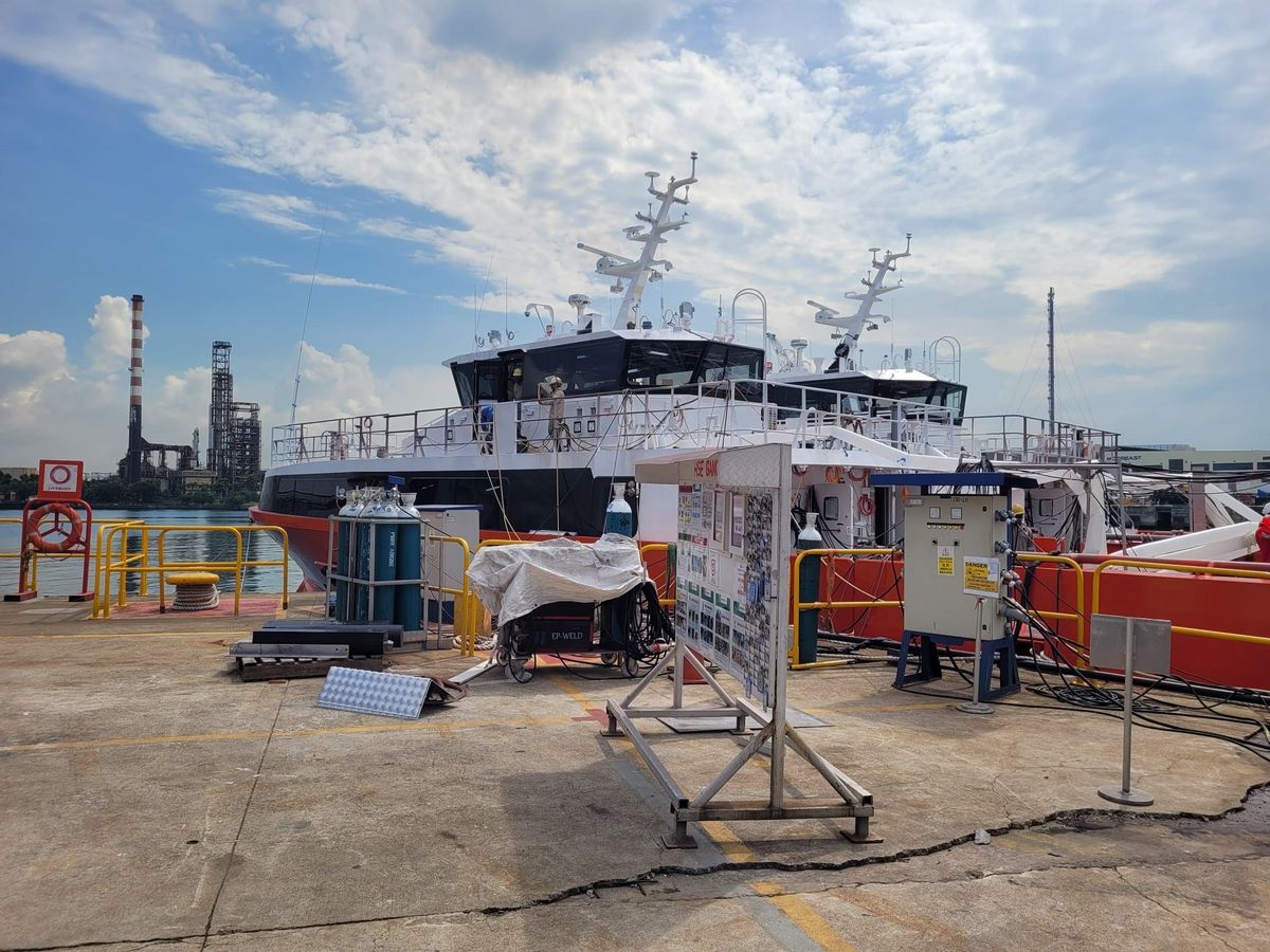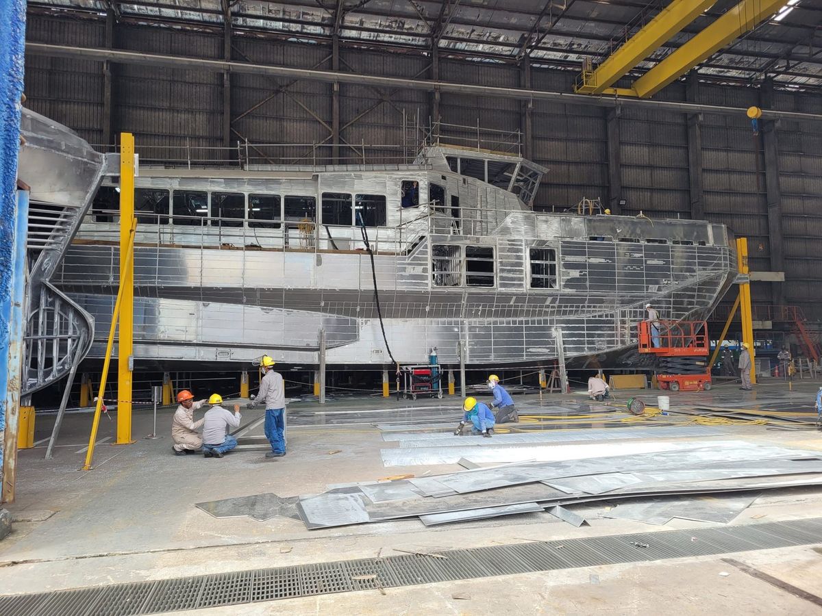 During our visit, we had the privilege of boarding the latest vessels under construction by Aircat Vessels, featuring innovative technology such as the Surface Effect Ship (SES), boasting both an air cushion and twin hulls.