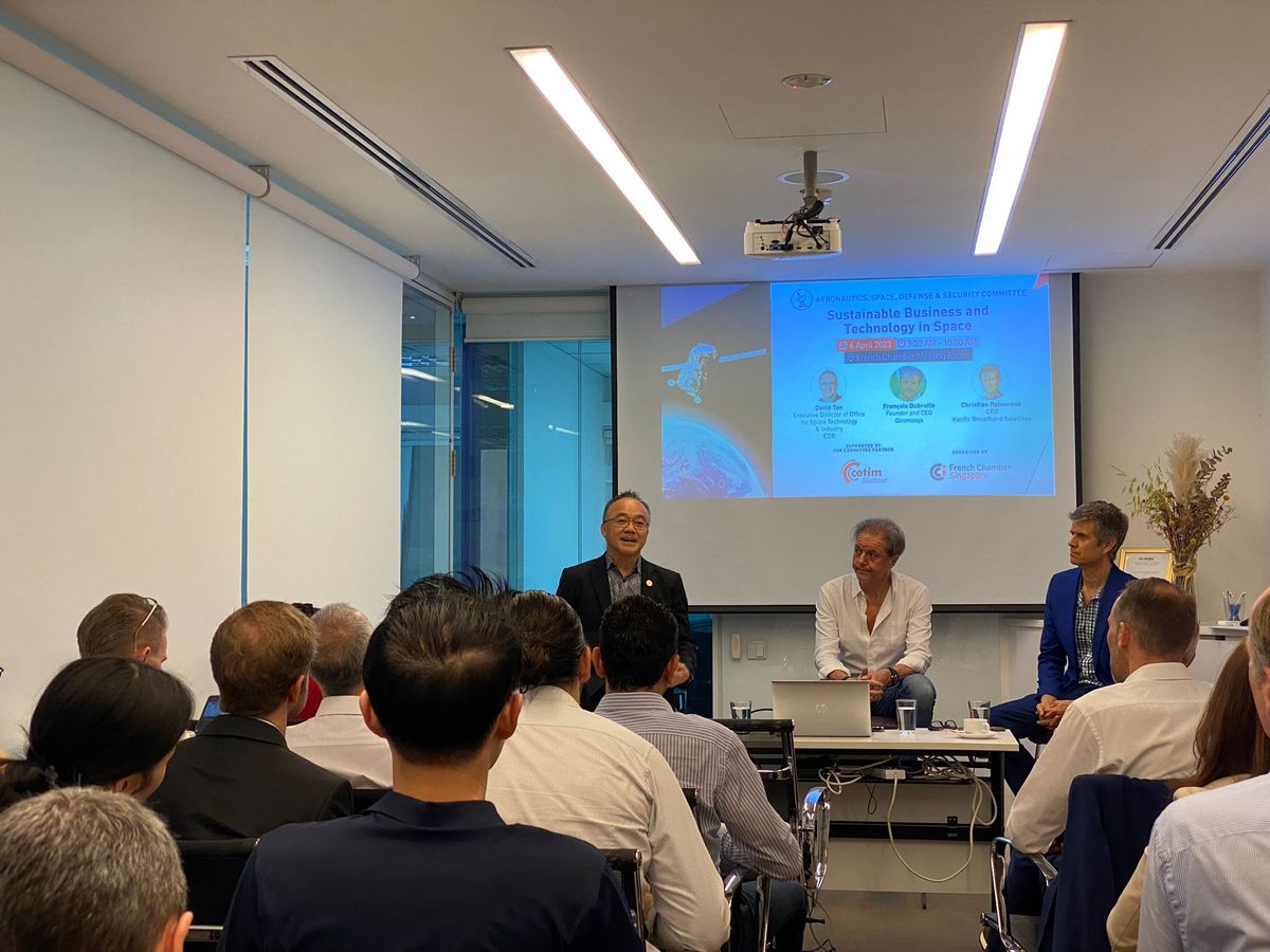 The French Chamber of Commerce in Singapore was honoured to organise a committee meeting with our esteemed speakers: Mr. David Tan, Executive Director of Office for Space Technology & Industry at EDB; Mr. François Dubrulle, Founder and CEO at Qosmosys and Mr. Christian Patouraux, CEO at Kacific Broadband Satellites. They shared about what are the latest technologies and innovations that are being developed in the Space industry for a more sustainable and responsible business, what are the main challenges, and the importance of collaborations and partnerships in promoting sustainability and responsible conduct in the space industry.