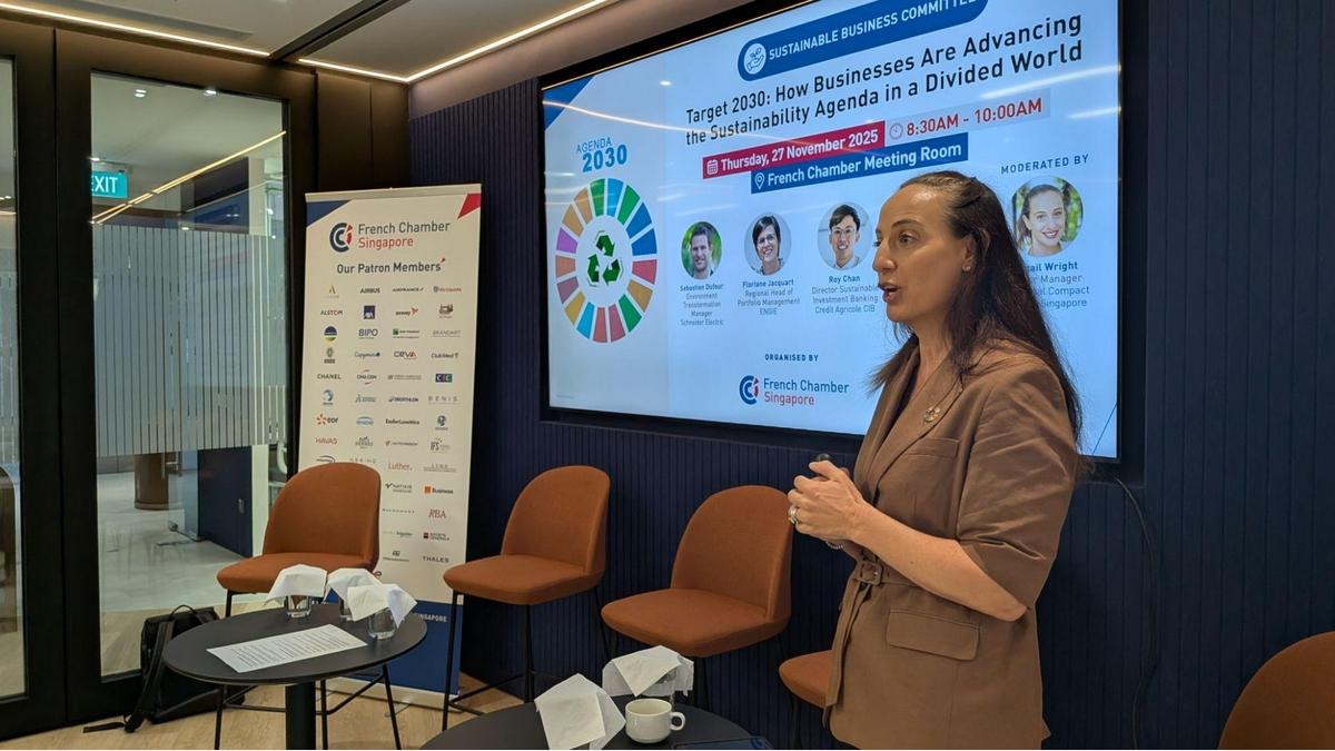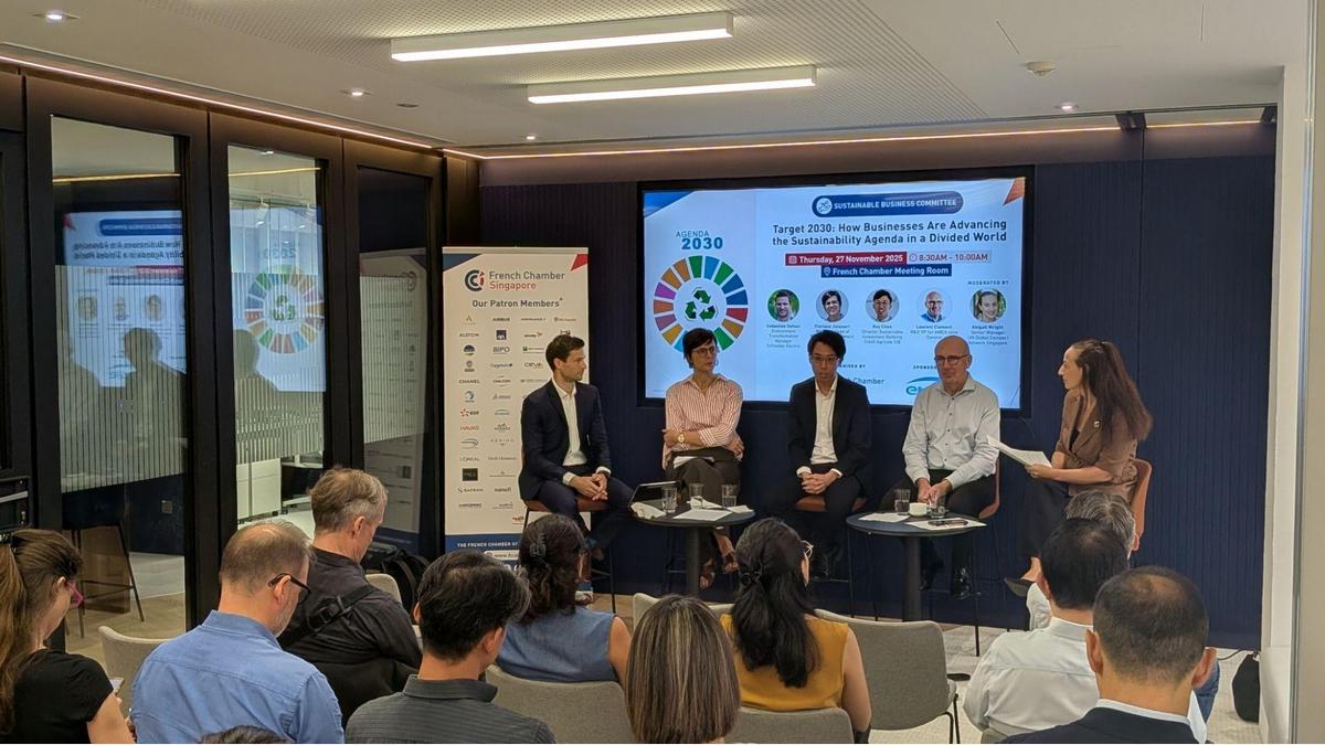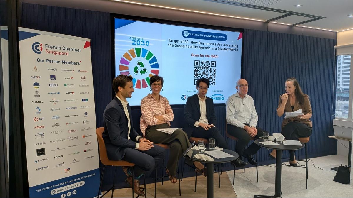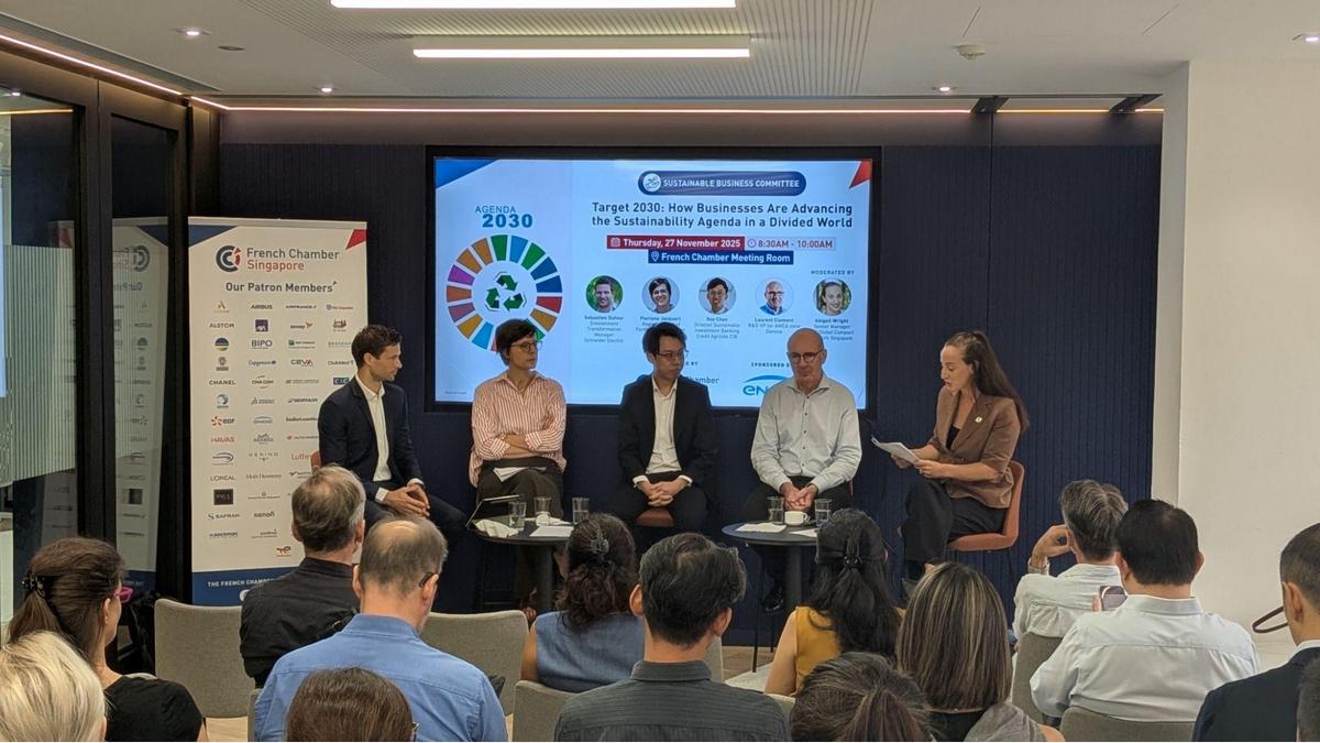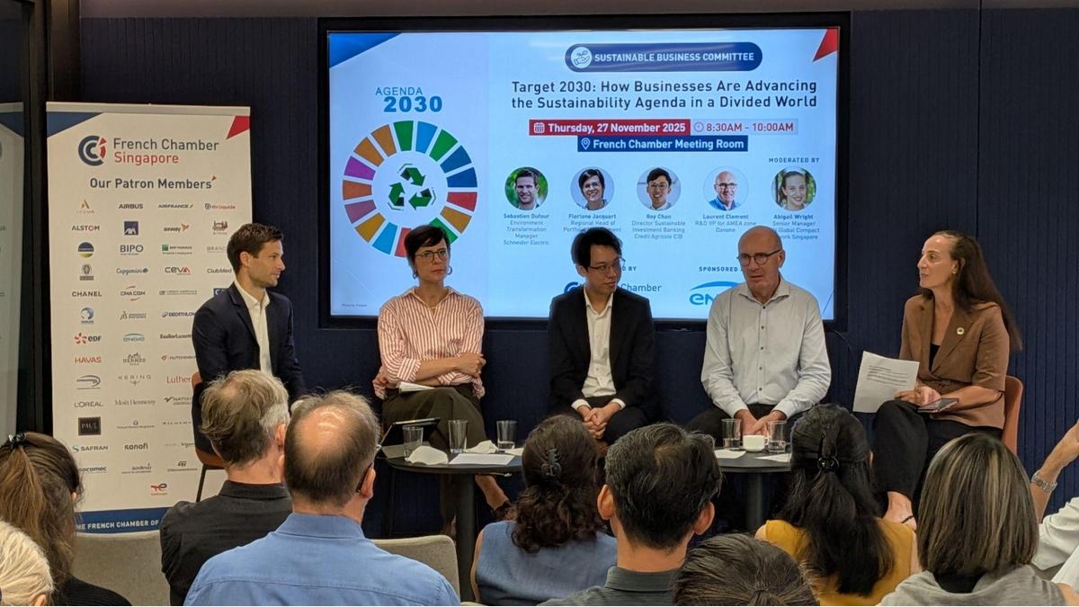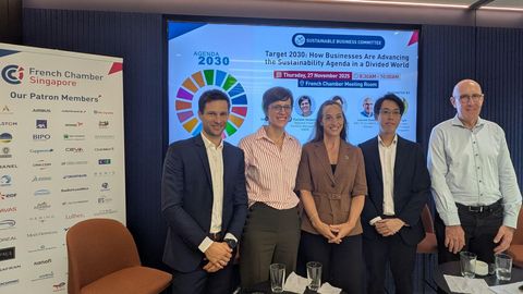 A warm thank you to our esteemed speakers: Laurent Clement (R&D VP for AMEA zone at Danone); Sebastien Dufour (Environment Transformation Manager at Schneider Electric); Floriane Jacquart (Regional Head of Portfolio Management at ENGIE); Roy Chan (Director Sustainable Investment Banking at Credit Agricole CIB) and Abigail Wright (Senior Manager, UN Global Compact Network Singapore) for sharing their invaluable insights on the private sector's crucial role in driving the global sustainability agenda.