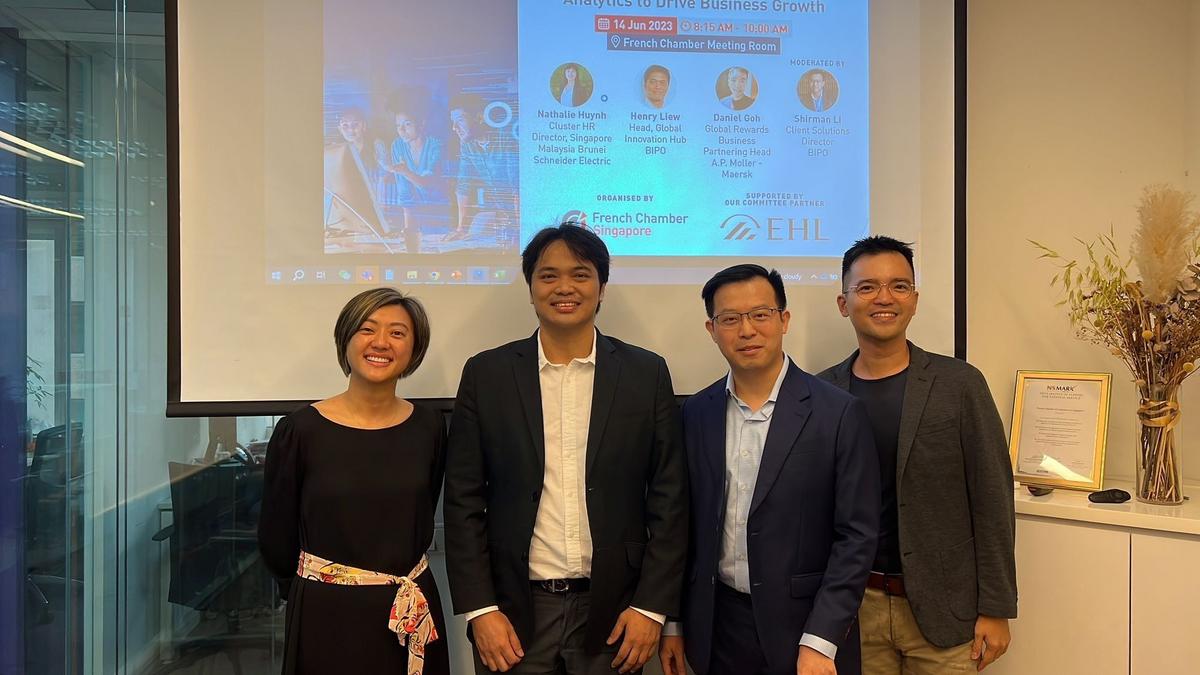Thank you to our esteemed speakers Nathalie Huynh, Cluster HR Director, Singapore Malaysia Brunei at Schneider Electric, Henry Liew, Head, Global Innovation Hub at BIPO and Daniel Goh, Global Rewards Business Partnering Head at A.P. Moller – Maersk for a dynamic fireside chat on "The Future of Work: Leveraging AI & People Analytics to Drive Business Growth."