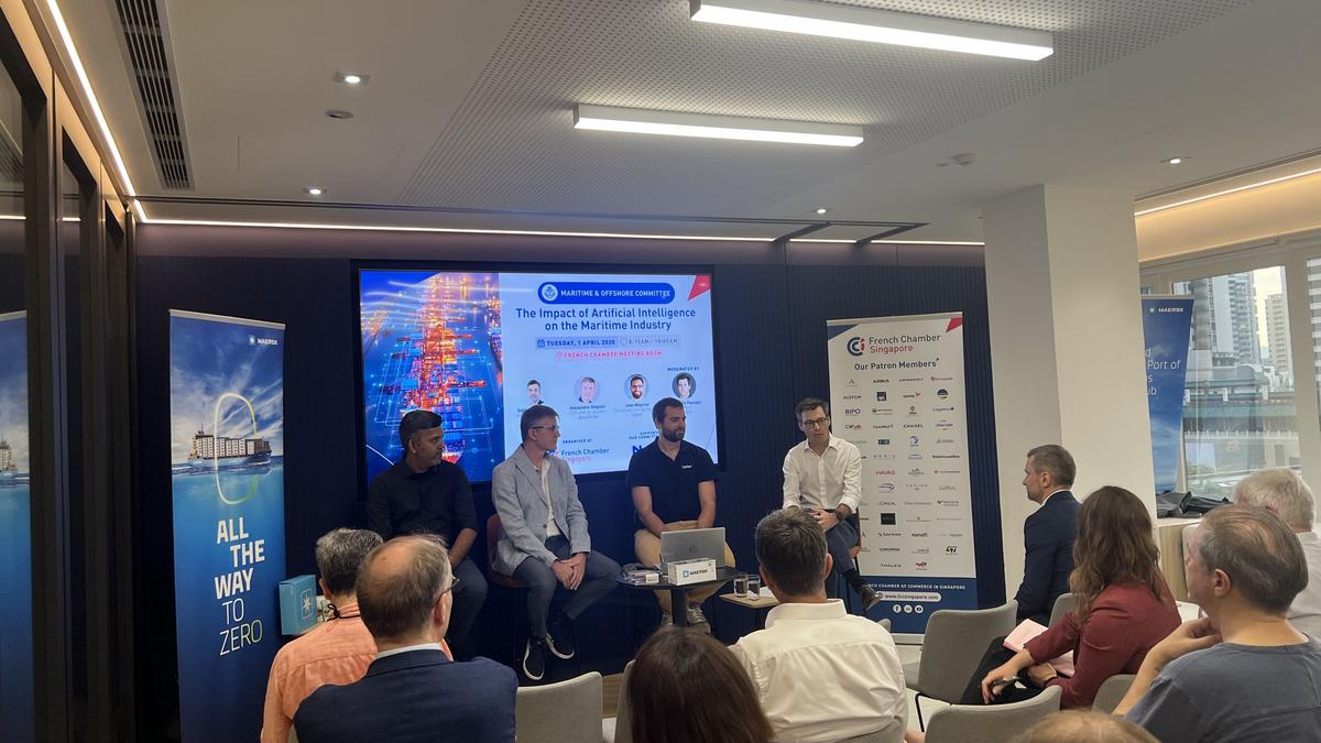 The French Chamber of Commerce in Singapore hosted an engaging discussion on “The Impact of Artificial Intelligence on the Maritime Industry”. The session brought together industry professionals to discuss how AI is driving efficiency, safety, and sustainability across maritime operations, They presented the use of digital twins for harbor facilities; real-time analysis of maritime trade flows using multiple satellite data; and ocean forecasting at high-resolution thanks to AI data-fusion of multi physics satellite observation