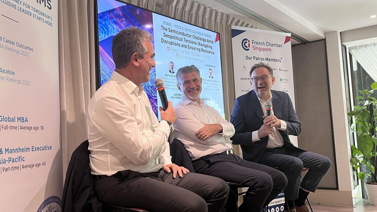 Thank you to our esteemed speakers – Mr Bertrand Stoltz, Executive Vice-President, Finance, Global Shared Services, Systems and Asia Public Affairs at STMicroelectronics, Mr. Erwan Barre, Partner at RHTLaw and moderator Prof. Cedomir Nestorovic from ESSEC Business School, for facilitating this informative discussion about the challenges and opportunities facing the semiconductor industry.