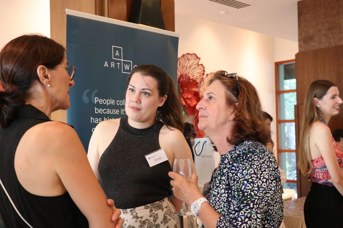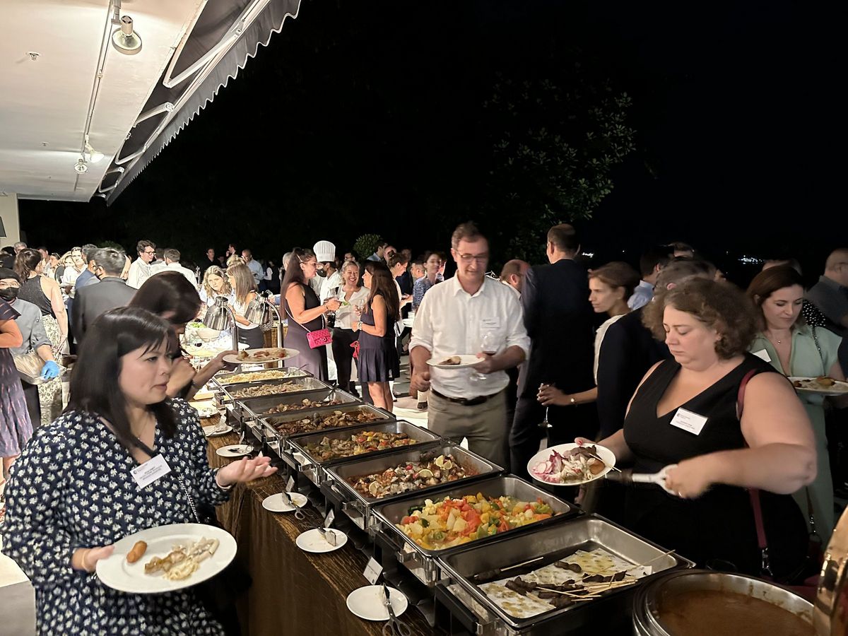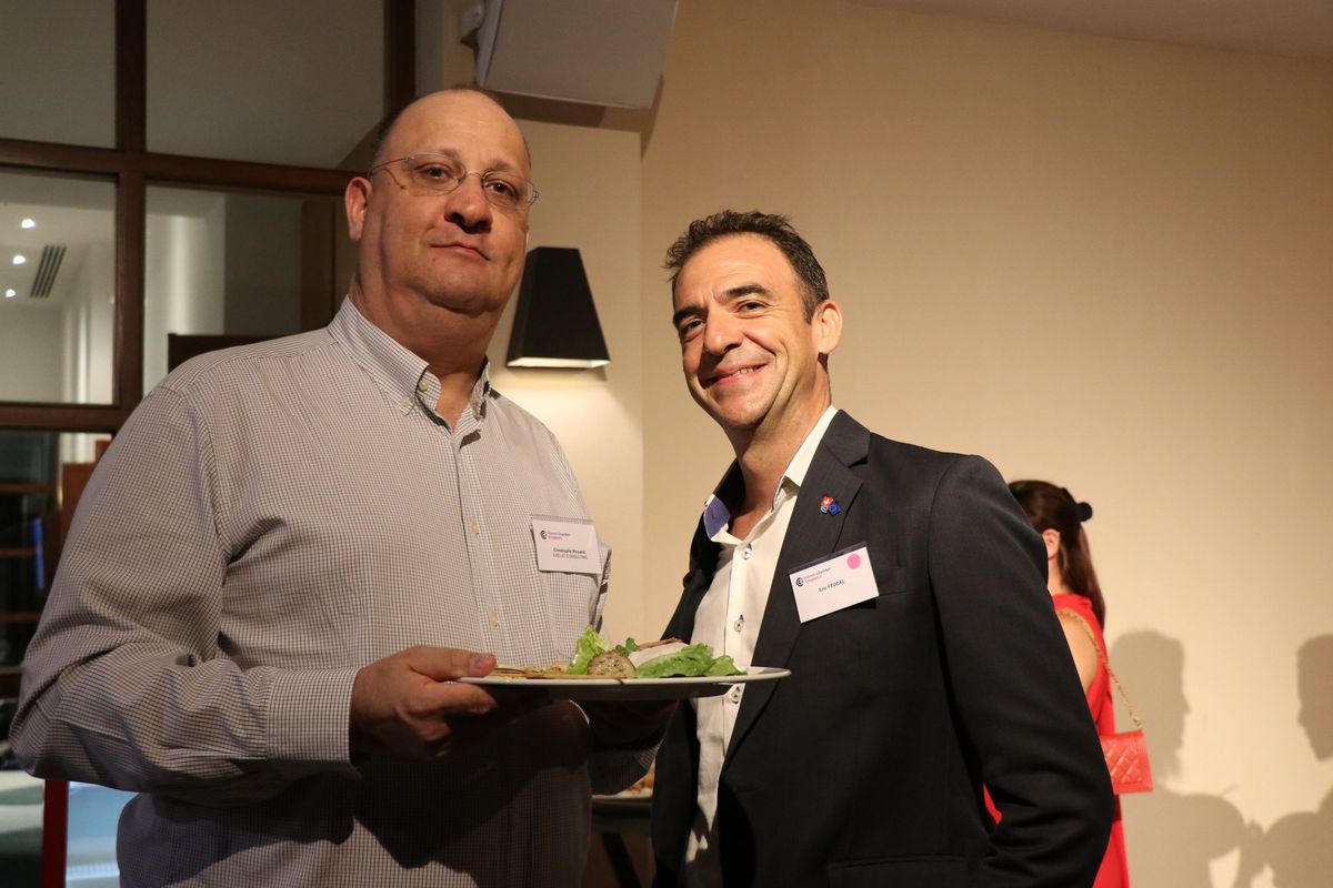 Guests enjoyed a delightful buffet dinner on the terrace, accompanied by a fine selection of French wines provided by The Vintage Wine Club. The menu included a variety of canapés, charcuterie, meats, raclette, cheeses (provided by LPB Market), and a tempting array of desserts. It was the perfect setting for networking in a relaxed and welcoming atmosphere.