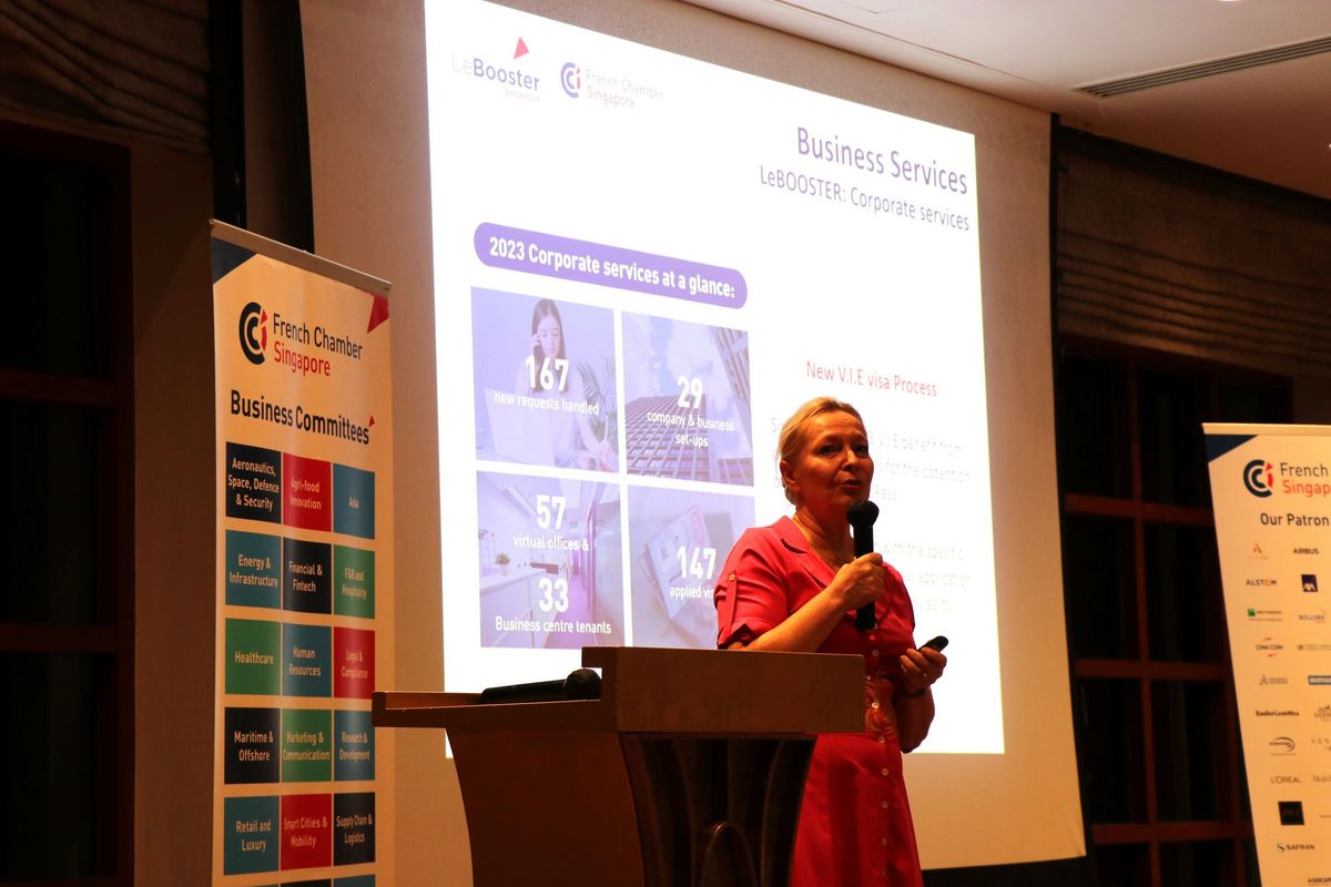 The event began with opening remarks from our President, Thomas Baudlot, followed by a warm welcome to our guest of honour, Her Excellency Ms. Minh-di TANG, French Ambassador to Singapore. Our Executive Director, Carine Lespayandel, then gave an insightful presentation on the activities and services offered by the French Chamber, underscoring the business opportunities and benefits available to our members, as well as our commitment to supporting the community.