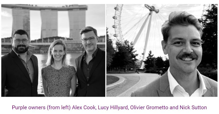 Purple is independently owned by Olivier Grometto, Alex Cook, Nick Sutton and Lucy Hillyard, with strong and diverse teams of what it calls ‘Purplers’ in Singapore, Hong Kong, London, Paris and South Africa.